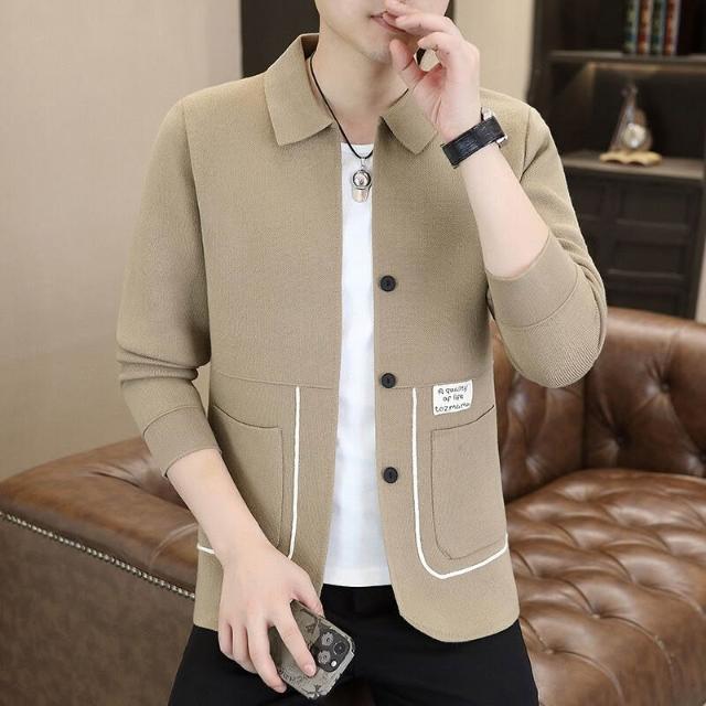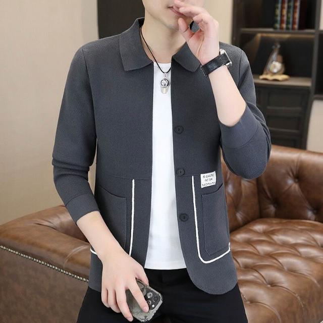 修身毛衣 寬松上衣 潮流夾克衫 針織開衫 針織開衫男士春秋潮流休閑針織外套輕奢帥氣修身男裝毛衣