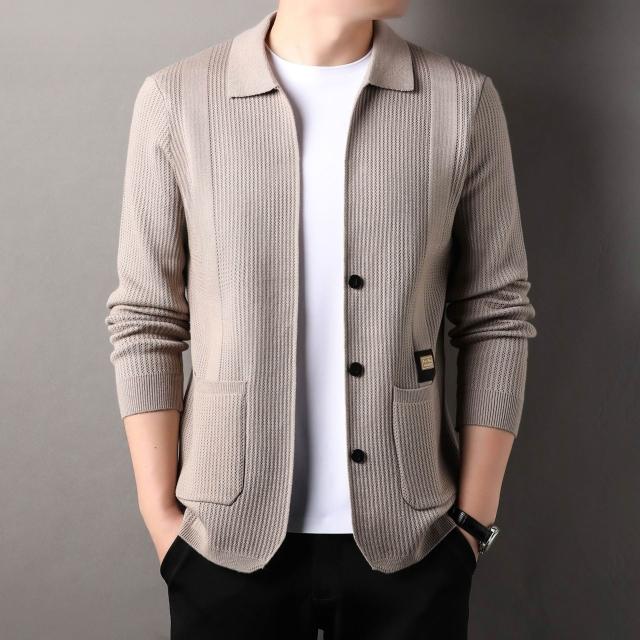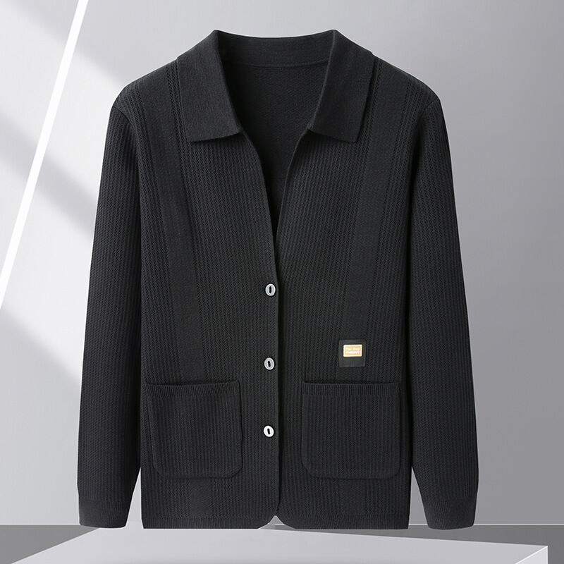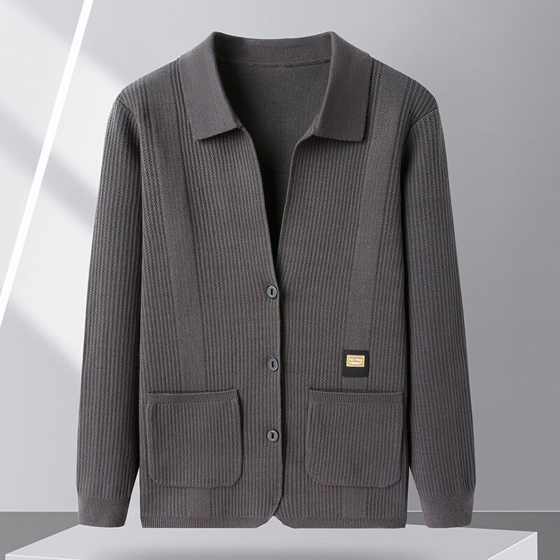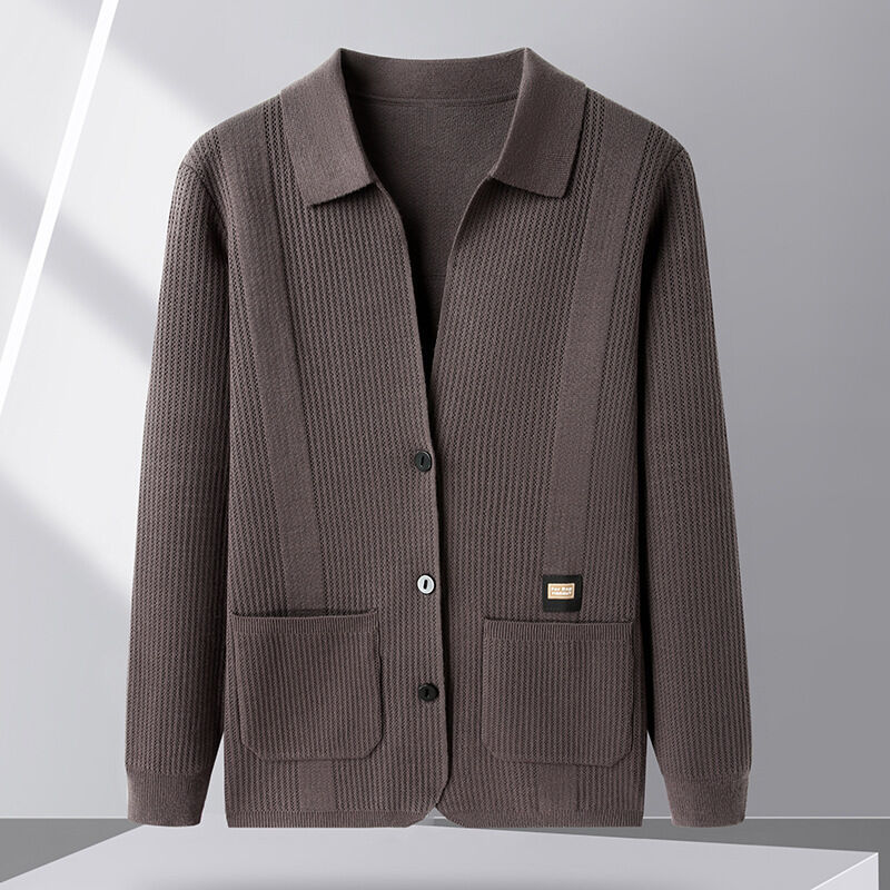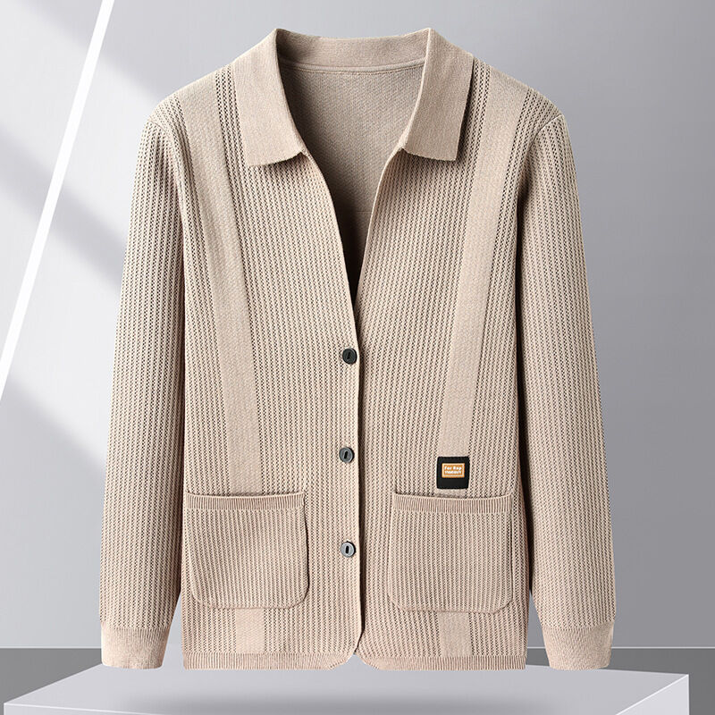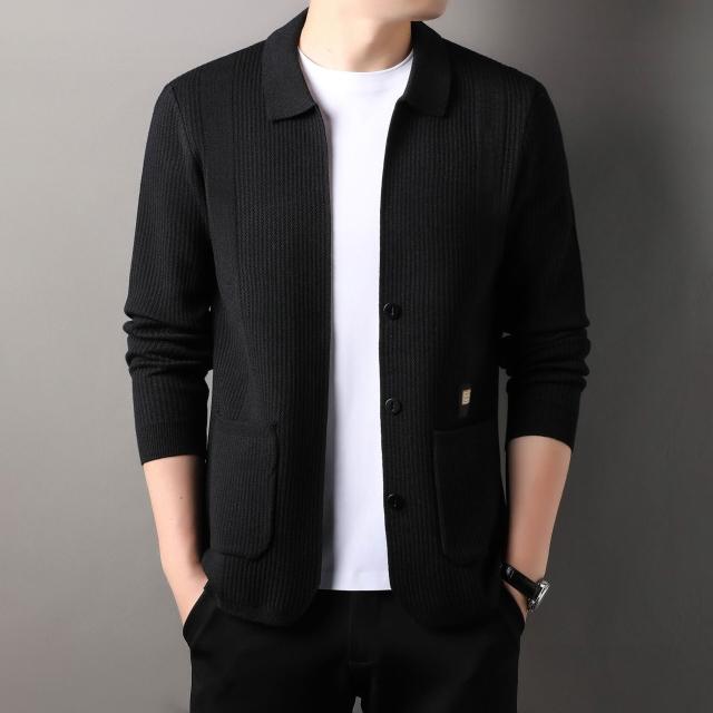 修身毛衣 寬松上衣 潮流夾克衫 針織開衫 春秋季針織開衫男士中年翻領休閑薄款長袖外套修身毛線衣夾克
