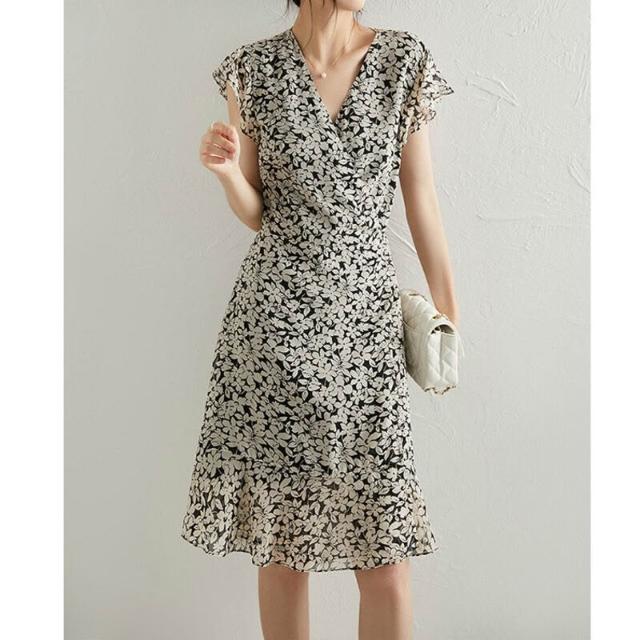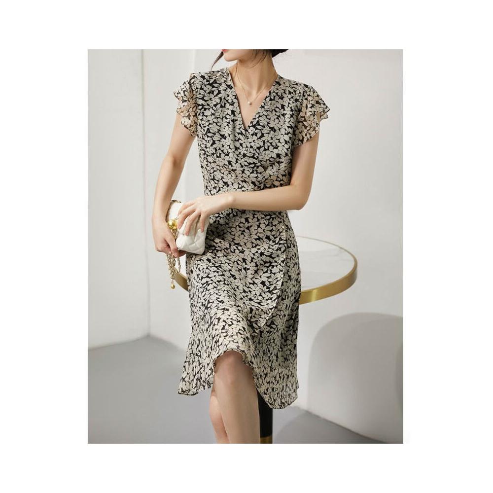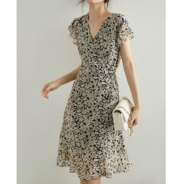 絮語精品碎花連衣裙 高端魚尾裙 媽媽夏裝 真絲喬其紗碎花裙子桑蠶絲茶歇連衣裙夏季多巴胺穿搭女裝