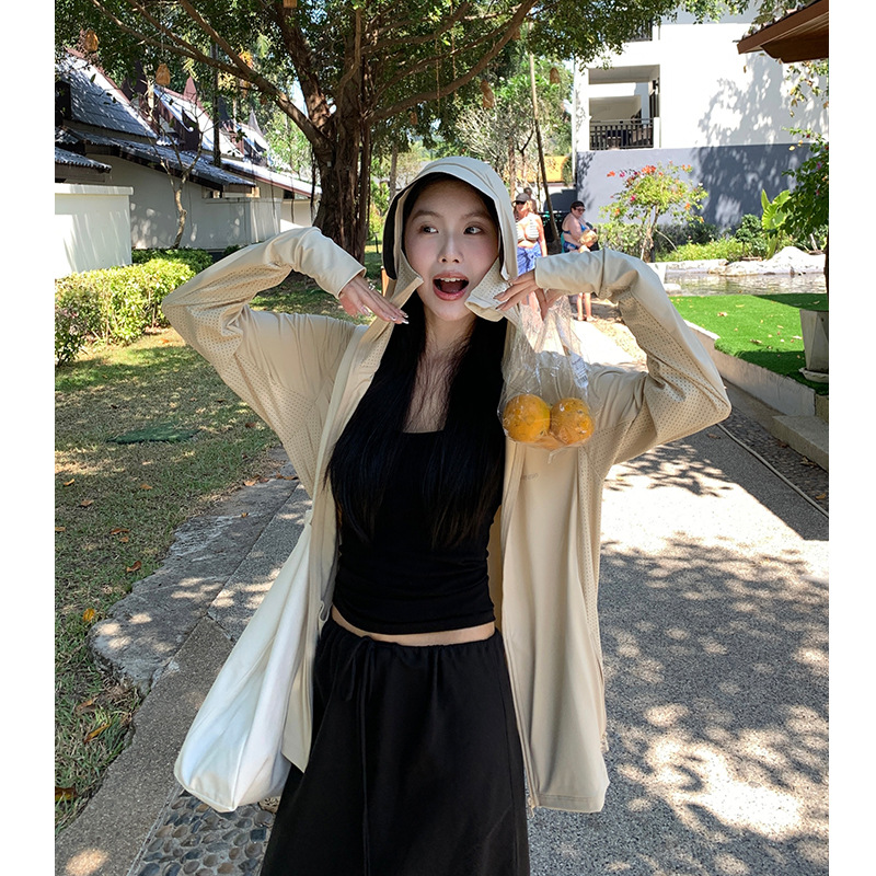 全身防曬服 UPF50+防曬衣 帽檐登山服 涼感UPF50+防曬衣女夏防紫外線黑膠帽檐原紗防曬服戶外透氣皮膚衣