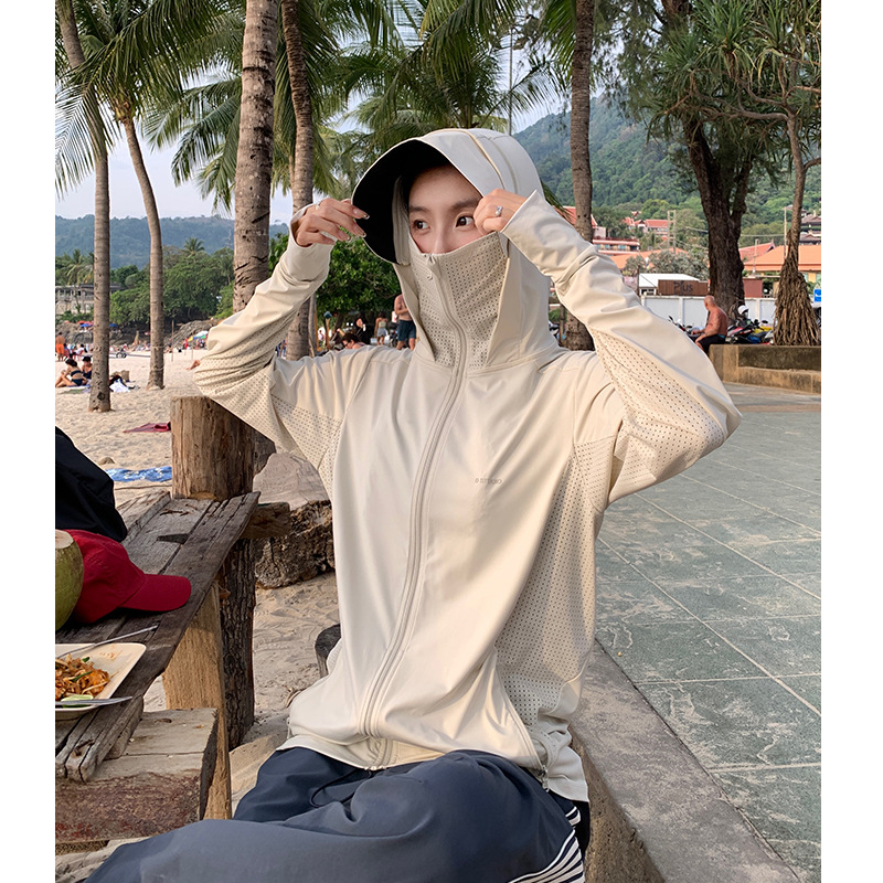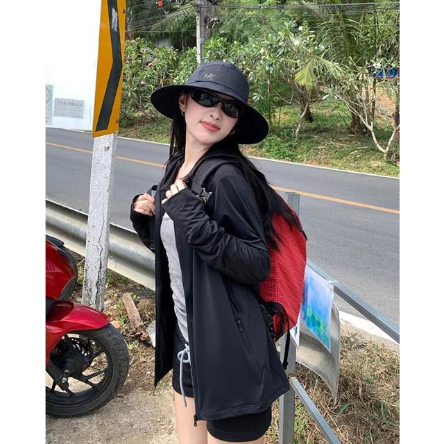 全身防曬服 UPF50+防曬衣 帽檐登山服 涼感UPF50+防曬衣女夏防紫外線黑膠帽檐原紗防曬服戶外透氣皮膚衣