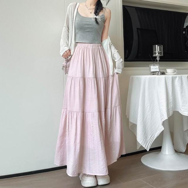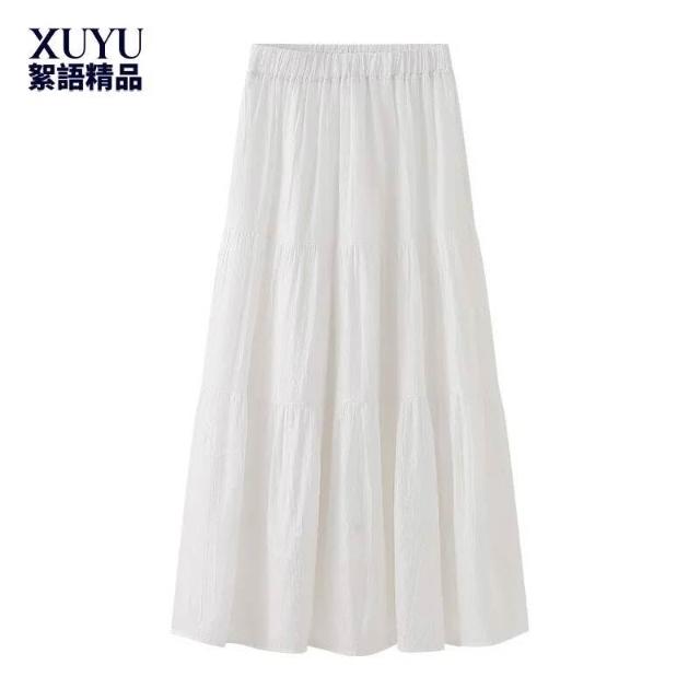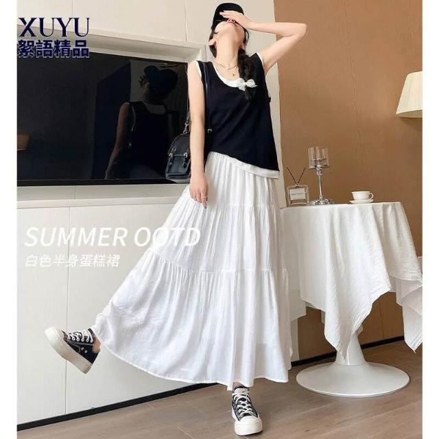 連衣裙 綁帶短裙 碎花裙 高端白色蛋糕半身裙女夏薄款新款中長款高腰小個子蓬蓬半身裙