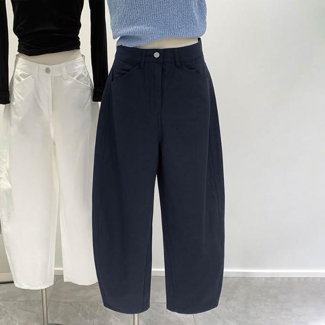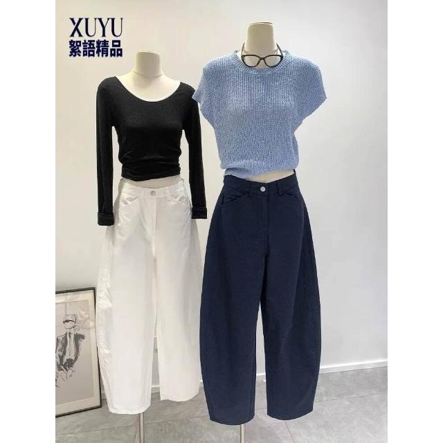 闊腿褲 五分褲 休閑煙管褲 六七分褲 九分闊腿香蕉哈倫鐮刀褲女春秋季新款白色小個子蘿蔔褲子