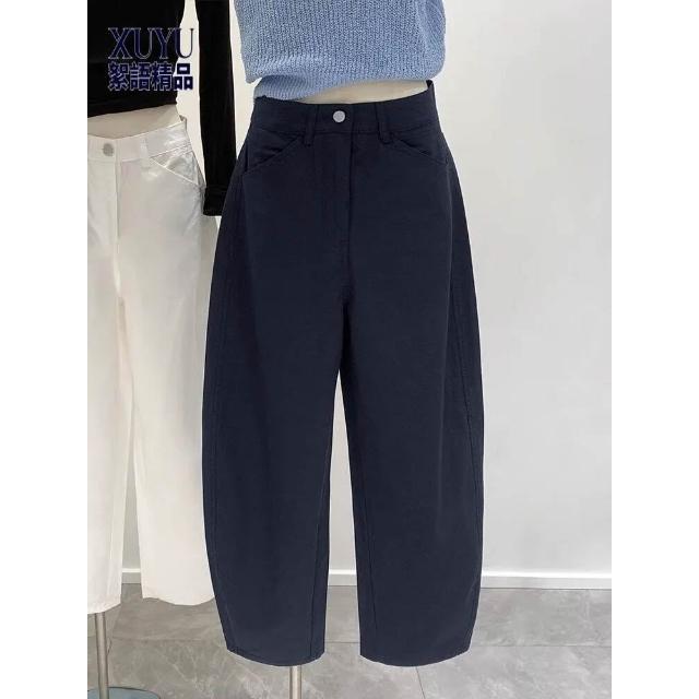 闊腿褲 五分褲 休閑煙管褲 六七分褲 九分闊腿香蕉哈倫鐮刀褲女春秋季新款白色小個子蘿蔔褲子