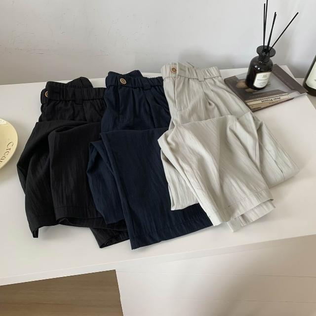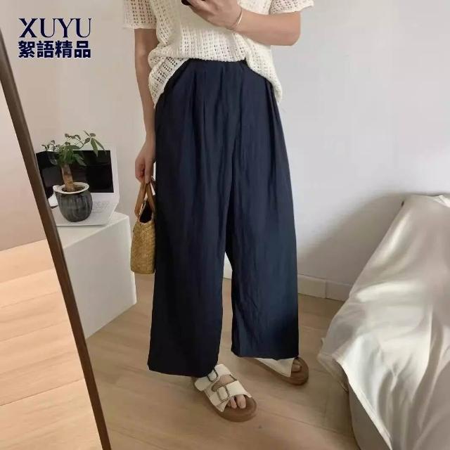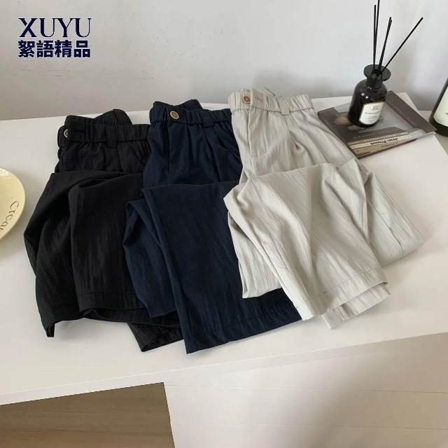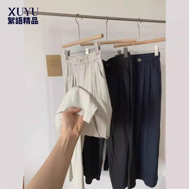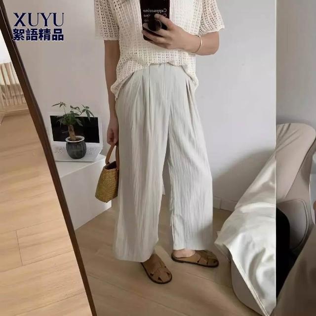 闊腿褲 五分褲 休閑煙管褲 六七分褲 女裝夏裝新款百搭寬松松緊高腰褶皺薄款速幹休閑闊腿九分褲女