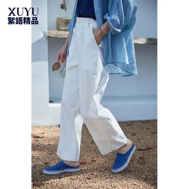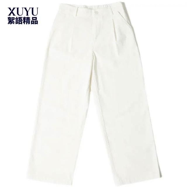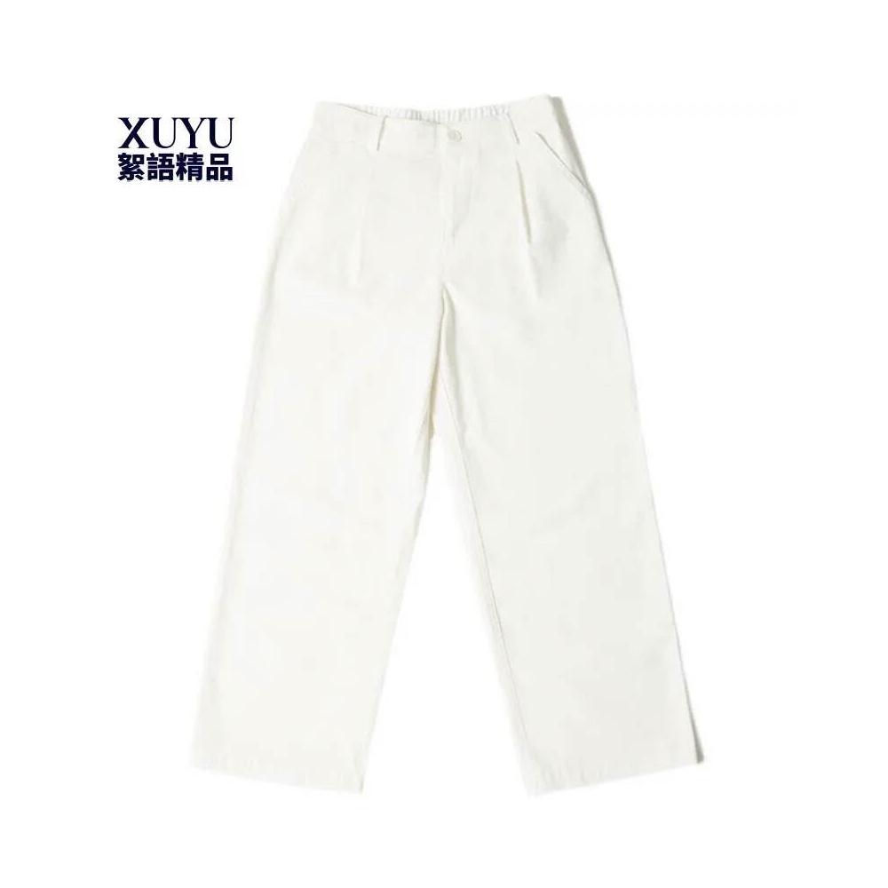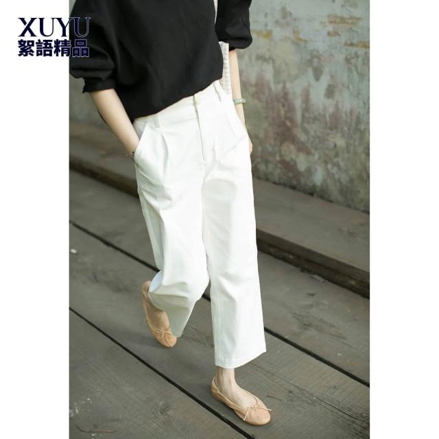 闊腿褲 五分褲 休閑煙管褲 六七分褲 質感白色闊腿褲 女裝新款春夏寬松高腰 舒適九分工裝褲子