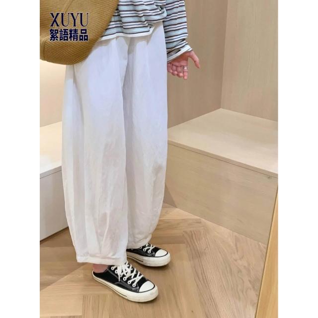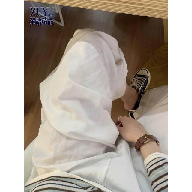 闊腿褲 五分褲 休閑煙管褲 六七分褲 流行白色氣球褲女春夏新款寬松百搭休閑九分褲燈籠褲闊腿