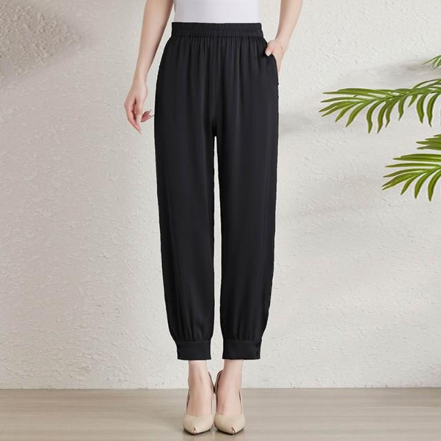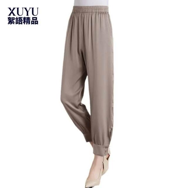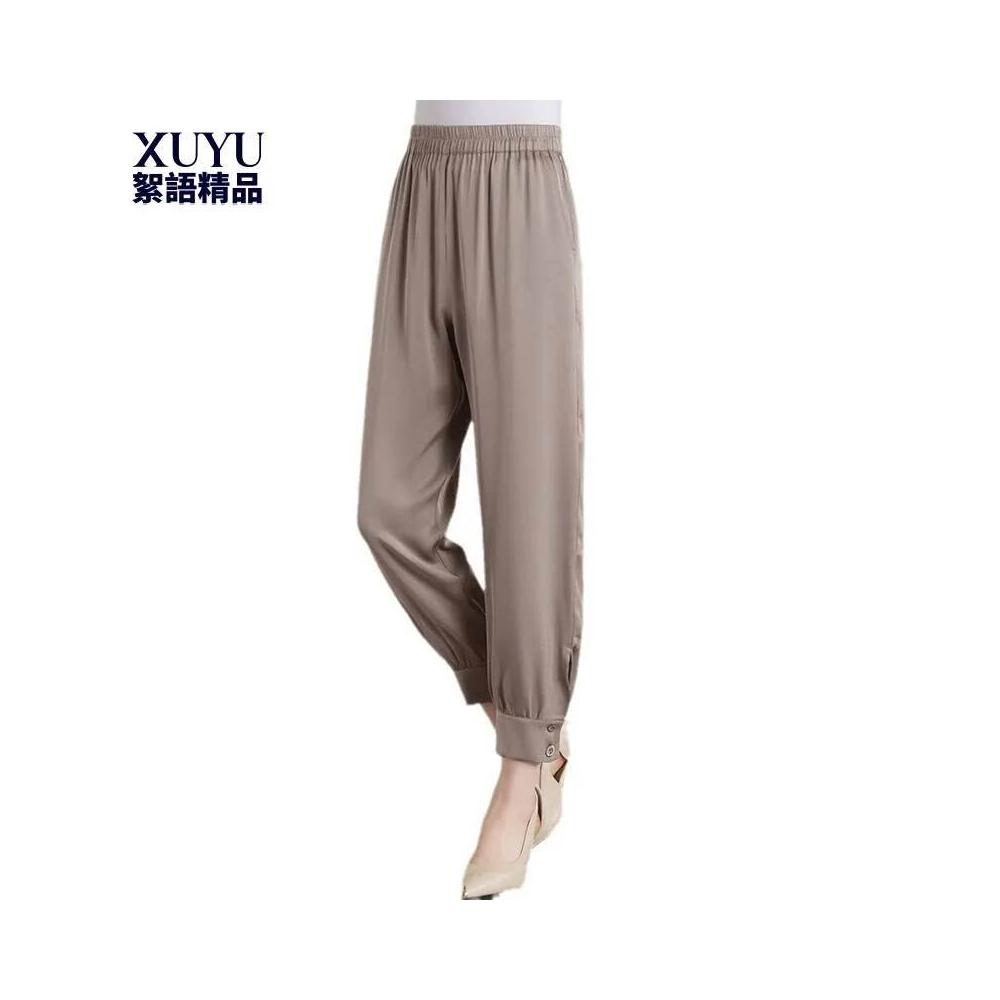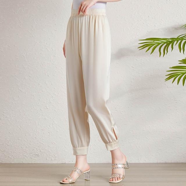 闊腿褲 五分褲 休閑煙管褲 六七分褲 重磅真絲九分褲女夏裝新款薄款寬松絲滑桑蠶絲緞面小腳哈倫褲