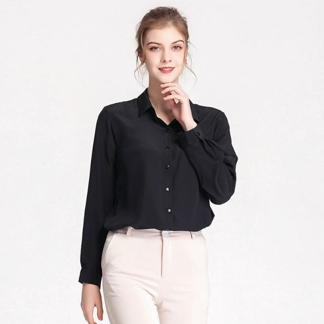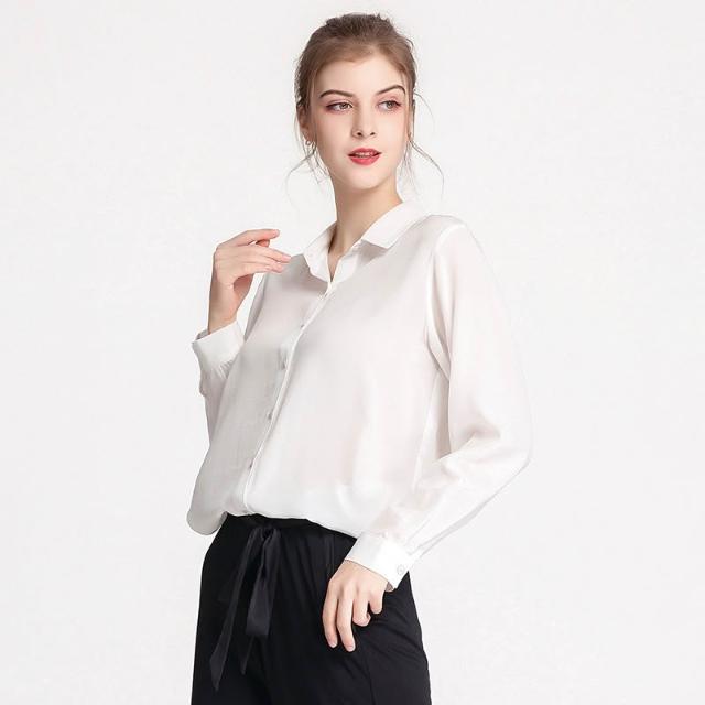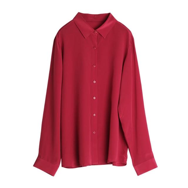 女裝 上衣 短袖T恤 亞麻上衣 純棉T恤 真絲上衣 重磅真絲襯衫女長袖新款秋裝寬松氣質大碼桑蠶絲雙绉女裝上衣