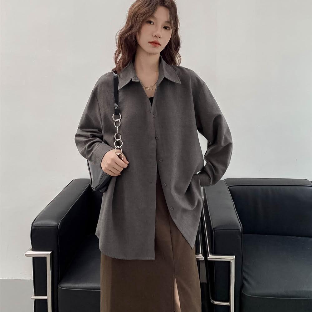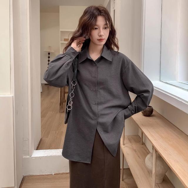 絮語精品女裝 上衣 短袖T恤 亞麻上衣 純棉T恤 真絲上衣 新款霧絨感中性冷淡風長袖襯衫女寬松顯瘦高級感襯衣外套
