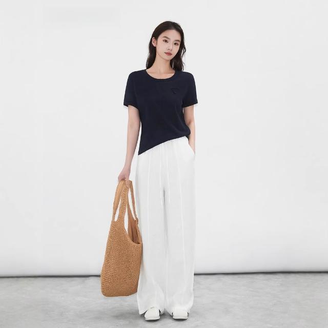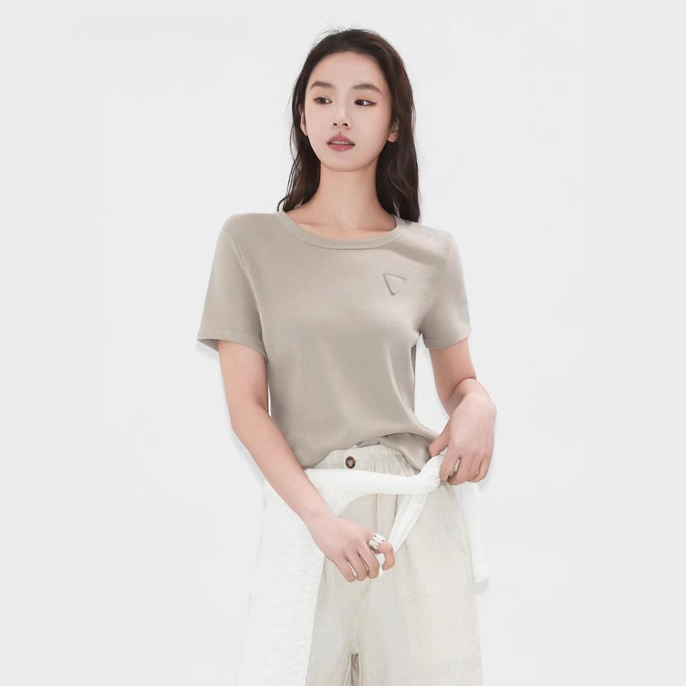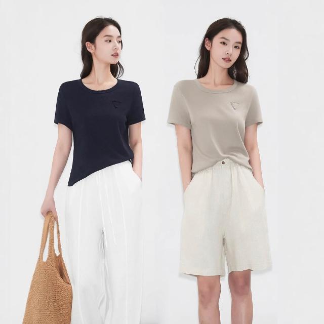 絮語精品女裝 上衣 短袖T恤 亞麻上衣 純棉T恤 真絲上衣 雨露麻T恤夏季女士亞麻短袖圓領女套頭純色基礎簡約涼感女款上衣