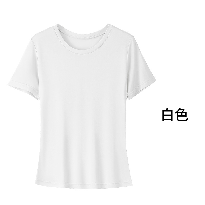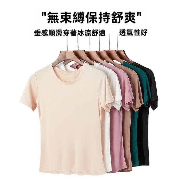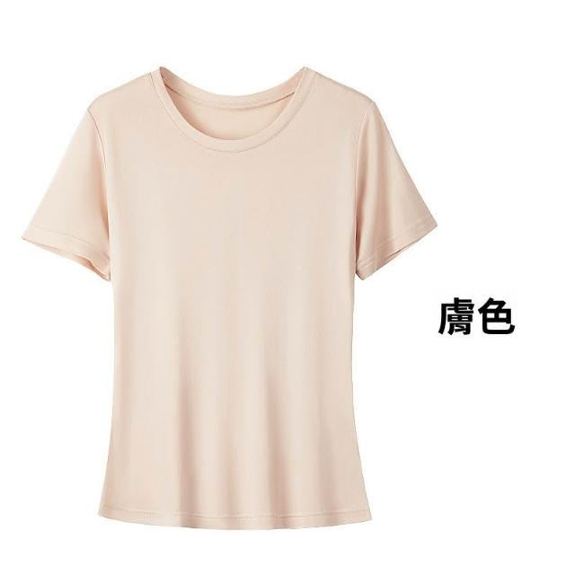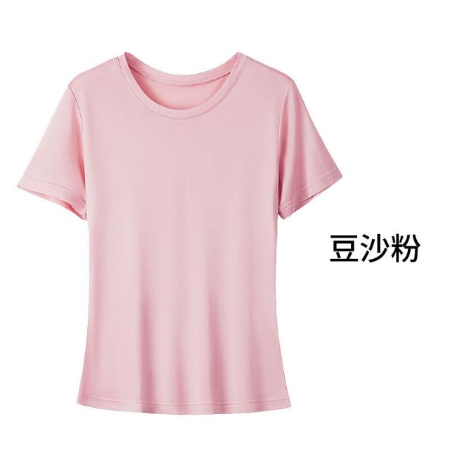 絮語精品女裝 上衣 短袖T恤 亞麻上衣 純棉T恤 真絲上衣 唐格 夏季真絲圓領T恤女基礎寬松純色百搭桑蠶絲短袖打底衫不透肉