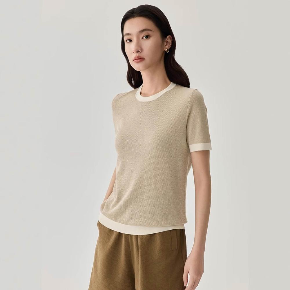 絮語精品女裝 上衣 短袖T恤 亞麻上衣 純棉T恤 真絲上衣 嚴選夏季簡約真絲短袖女T恤氣質通勤桑蠶絲時尚百搭寬松短袖上衣