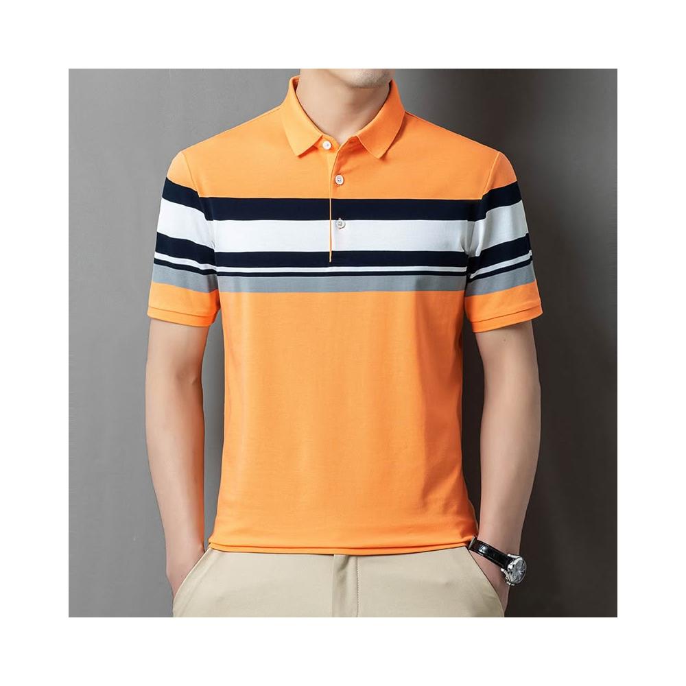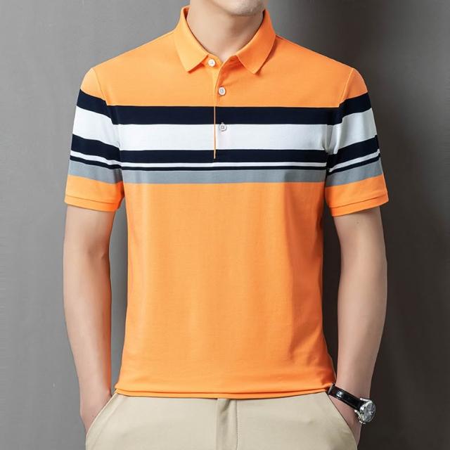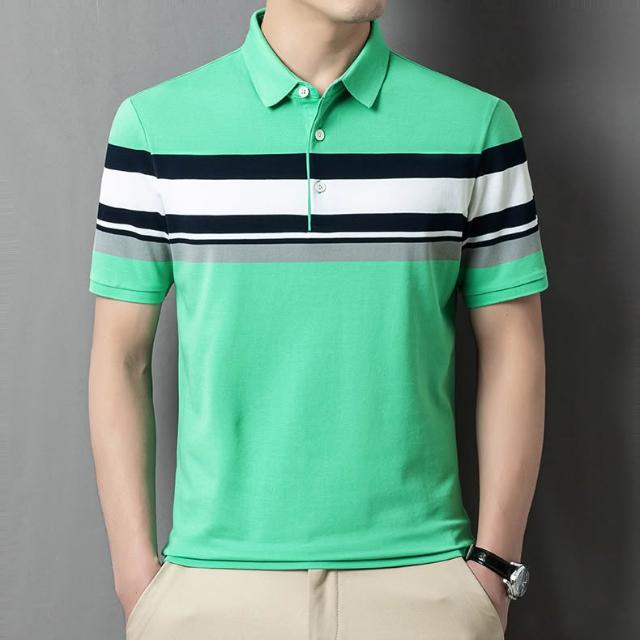 絮語精品男裝 上衣 POLO衫 純棉T恤 短袖T恤 夏新款中青年男商務通勤色織條紋翻領純棉短袖恤POLO衫