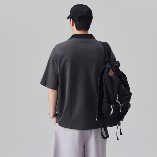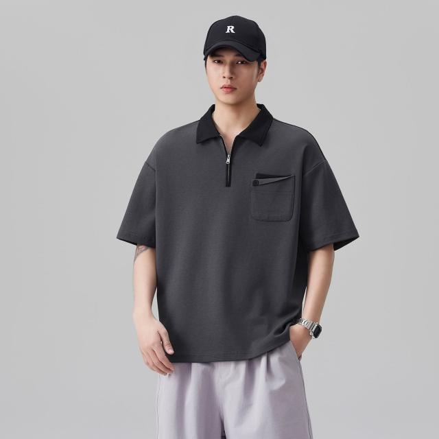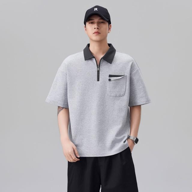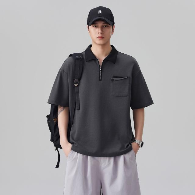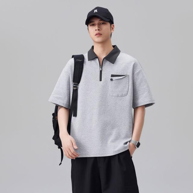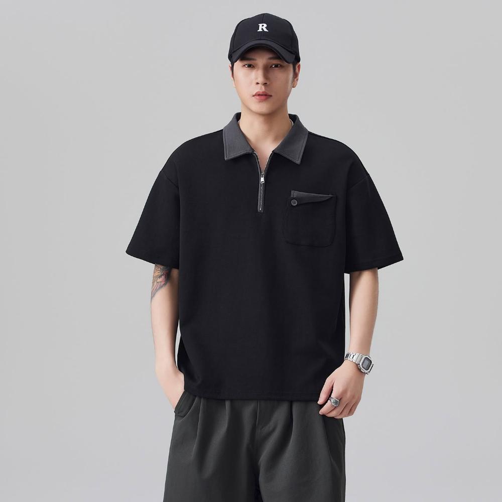 絮語精品男裝 上衣 POLO衫 純棉T恤 短袖T恤 美式潮流半拉鏈POLO衫男士夏季新款撞色翻領休閑上衣