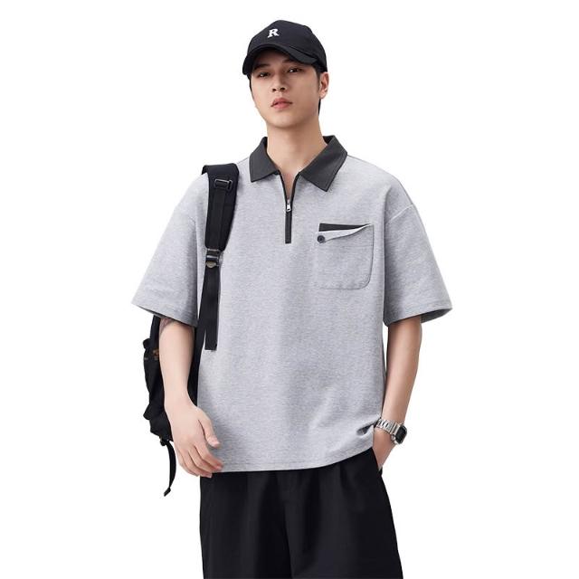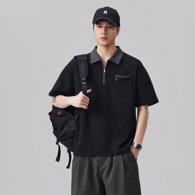 絮語精品男裝 上衣 POLO衫 純棉T恤 短袖T恤 美式潮流半拉鏈POLO衫男士夏季新款撞色翻領休閑上衣