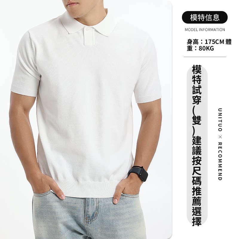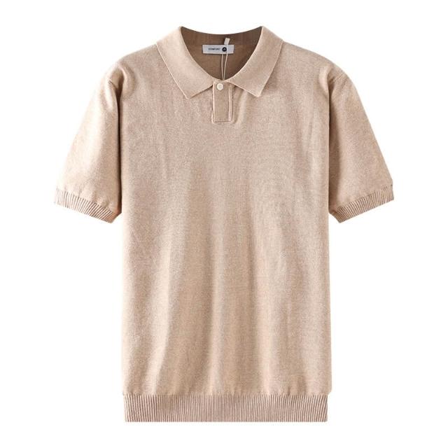 絮語精品男裝 上衣 POLO衫 純棉T恤 短袖T恤 簡約風純色針織Polo衫男夏季翻領商務休閑百搭打底體恤衫