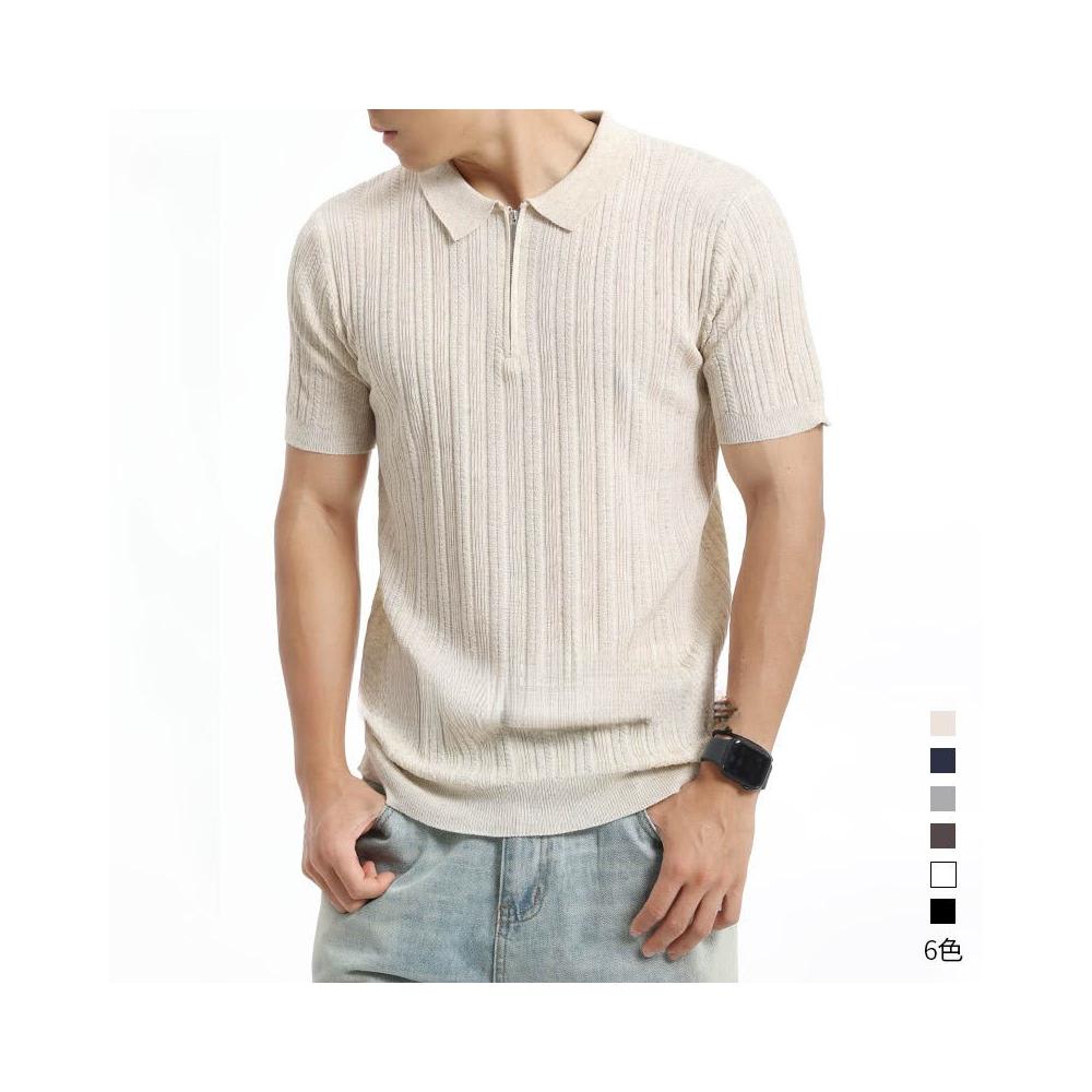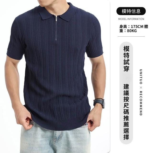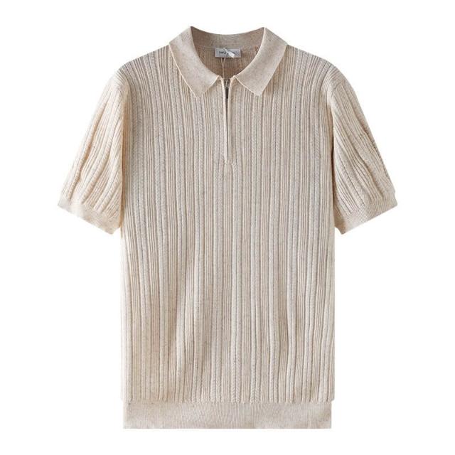 絮語精品男裝 上衣 POLO衫 純棉T恤 短袖T恤 豎坑條冰絲針織Polo衫男短袖翻領半拉鏈肌理商務萊賽爾男裝