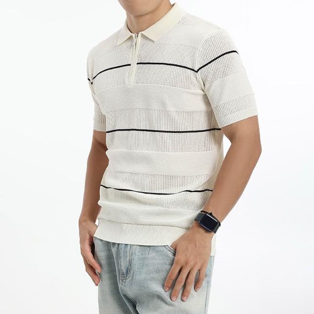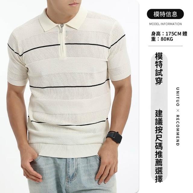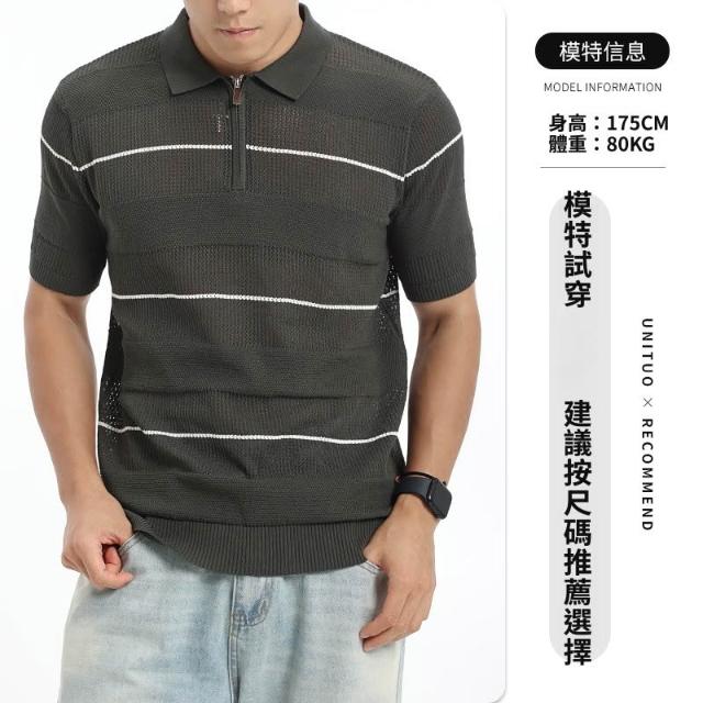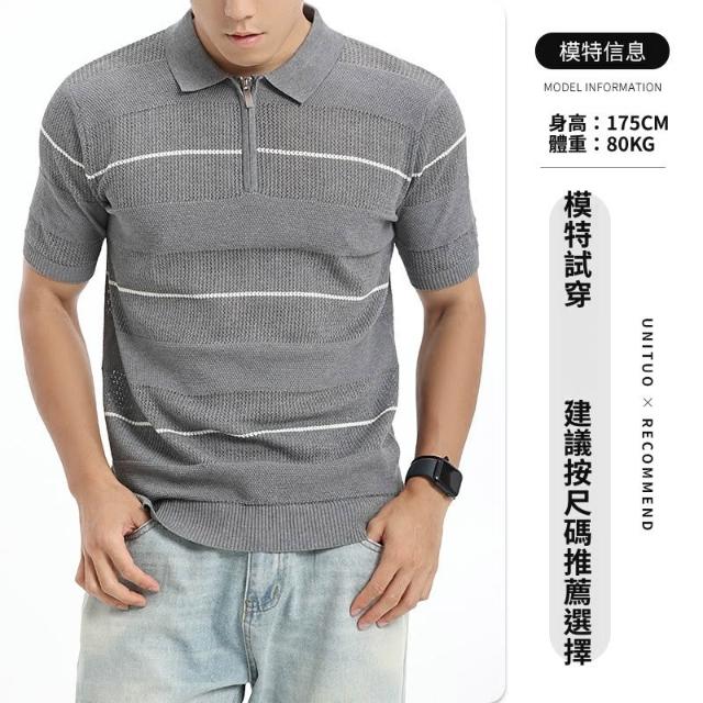 絮語精品男裝 上衣 POLO衫 純棉T恤 短袖T恤 男冰絲針織短袖Polo衫輕奢商務休閑翻領條紋镂空保羅衫