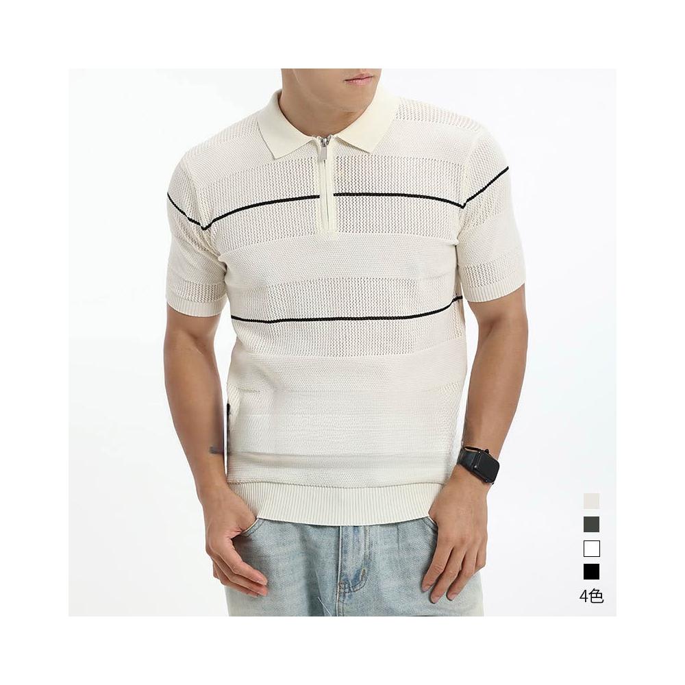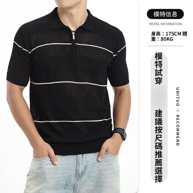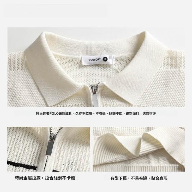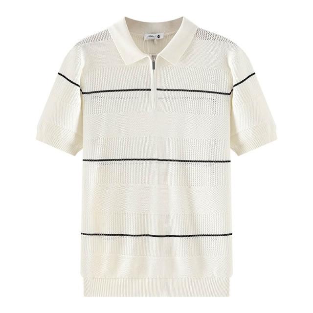 絮語精品男裝 上衣 POLO衫 純棉T恤 短袖T恤 男冰絲針織短袖Polo衫輕奢商務休閑翻領條紋镂空保羅衫