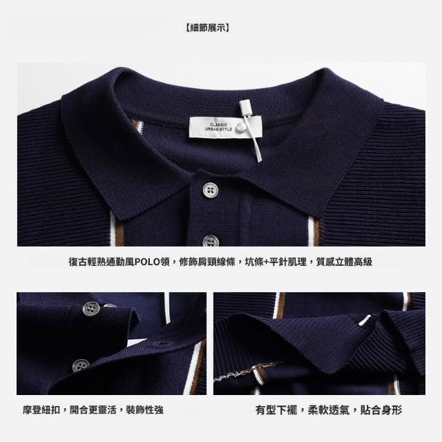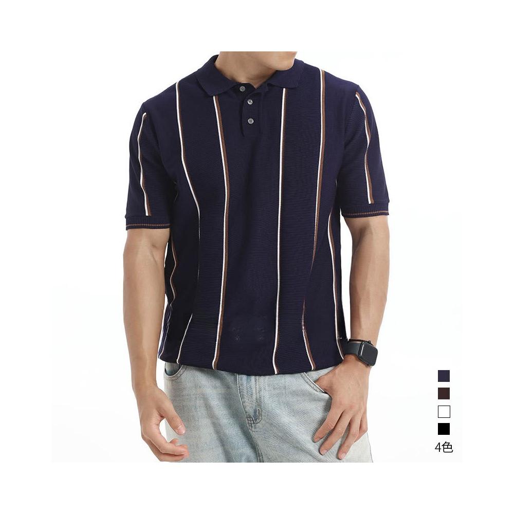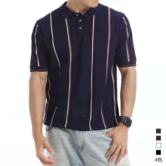 絮語精品男裝 上衣 POLO衫 純棉T恤 短袖T恤 男士高級感條紋針織冰絲polo衫男夏季翻領商務休閑上衣男裝