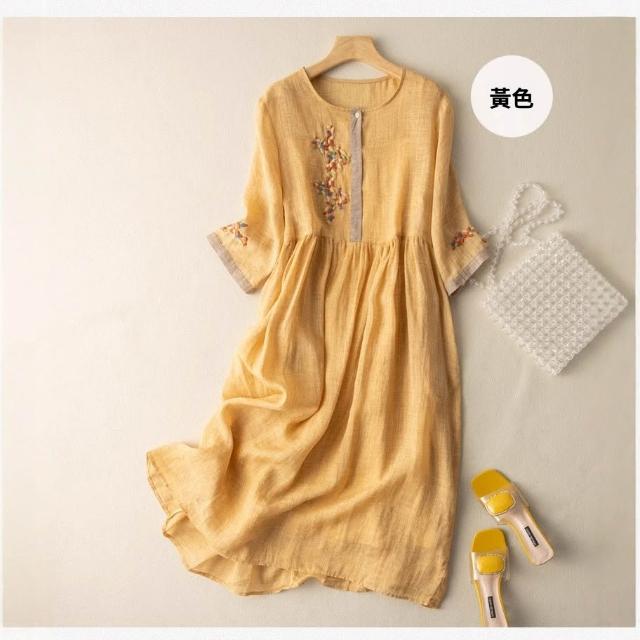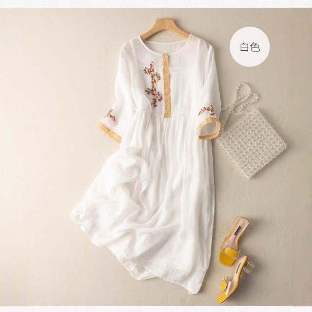 絮語精品女裝 下著 半身裙長裙 吊帶裙 連衣裙 夏季新款文藝民族風寬松短袖連衣裙女裙子白色文藝復古