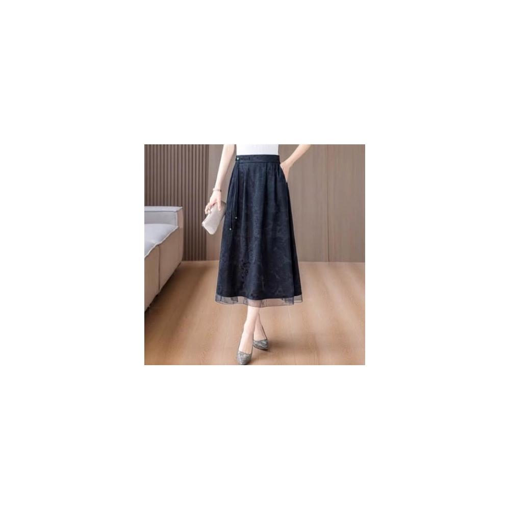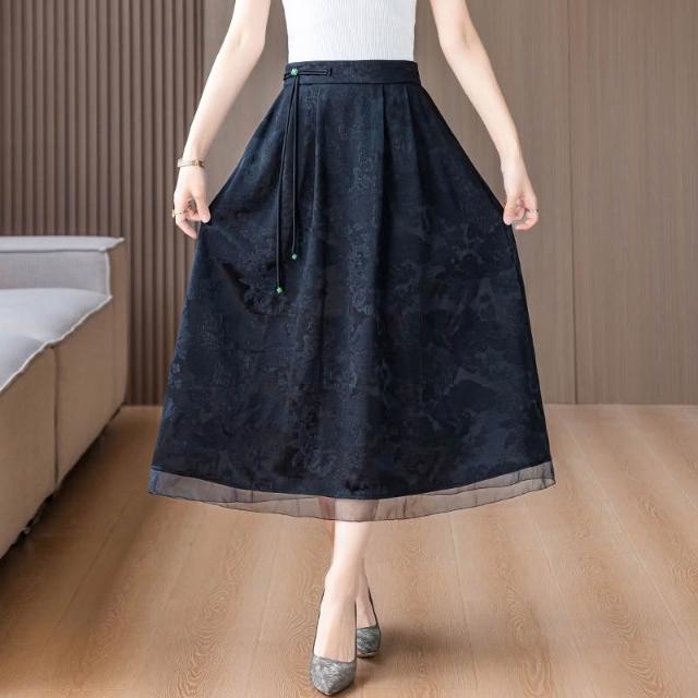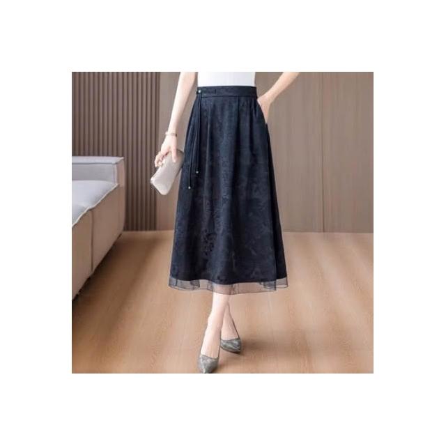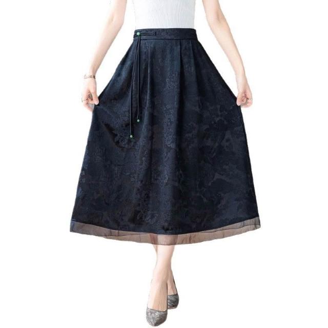 絮語精品女裝 下著 半身裙長裙 吊帶裙 連衣裙 中年媽媽黑色提花香雲紗半身裙女春夏新款復古氣質高腰顯瘦a字裙
