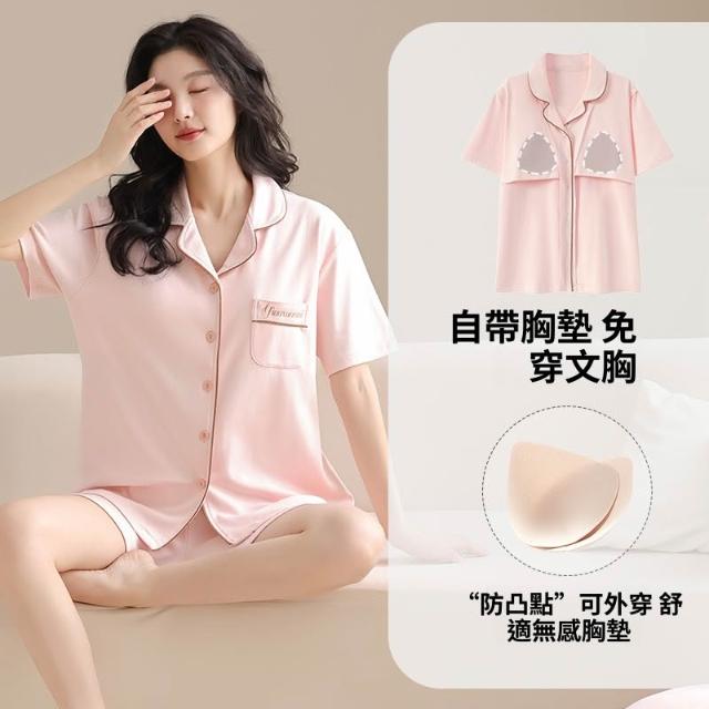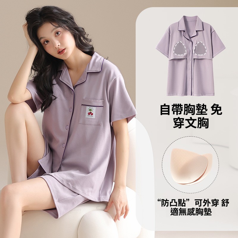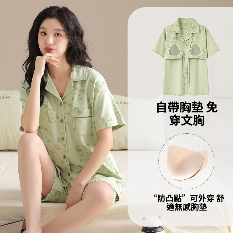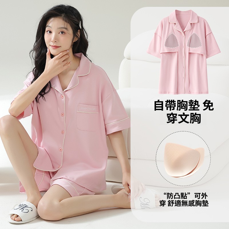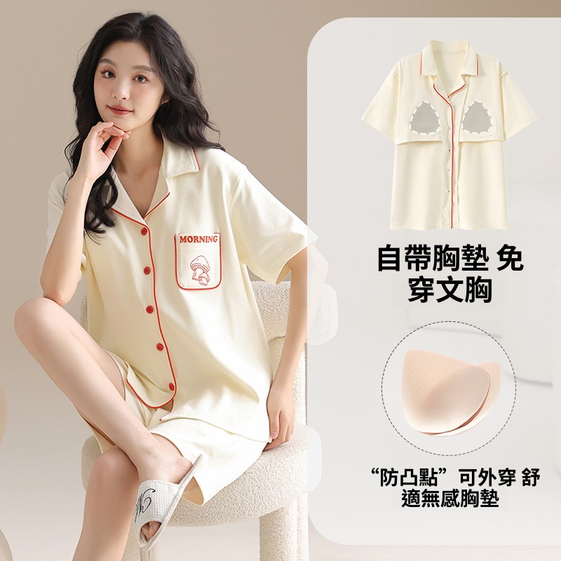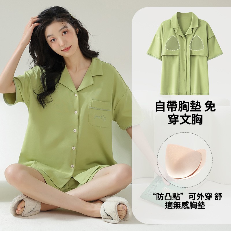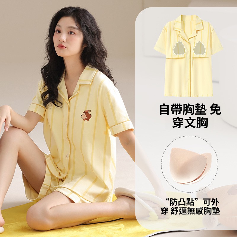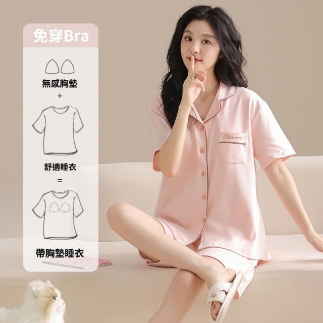 絮語精品家居服 冰絲睡衣 純棉 寬鬆舒適 廠家直銷睡衣女士家居服純棉薄款夏季時尚帶胸墊寬松套裝簡約新款