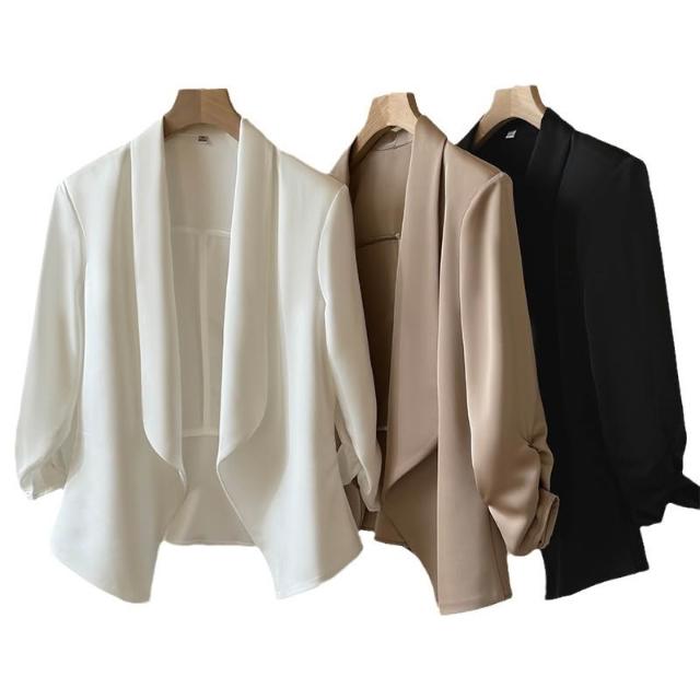 絮語精品薄款休閑外套 醋酸西裝 西服套裝 薄款七分袖 七分袖西裝外套薄款夏季新款緞面氣質百搭西服上衣女短款