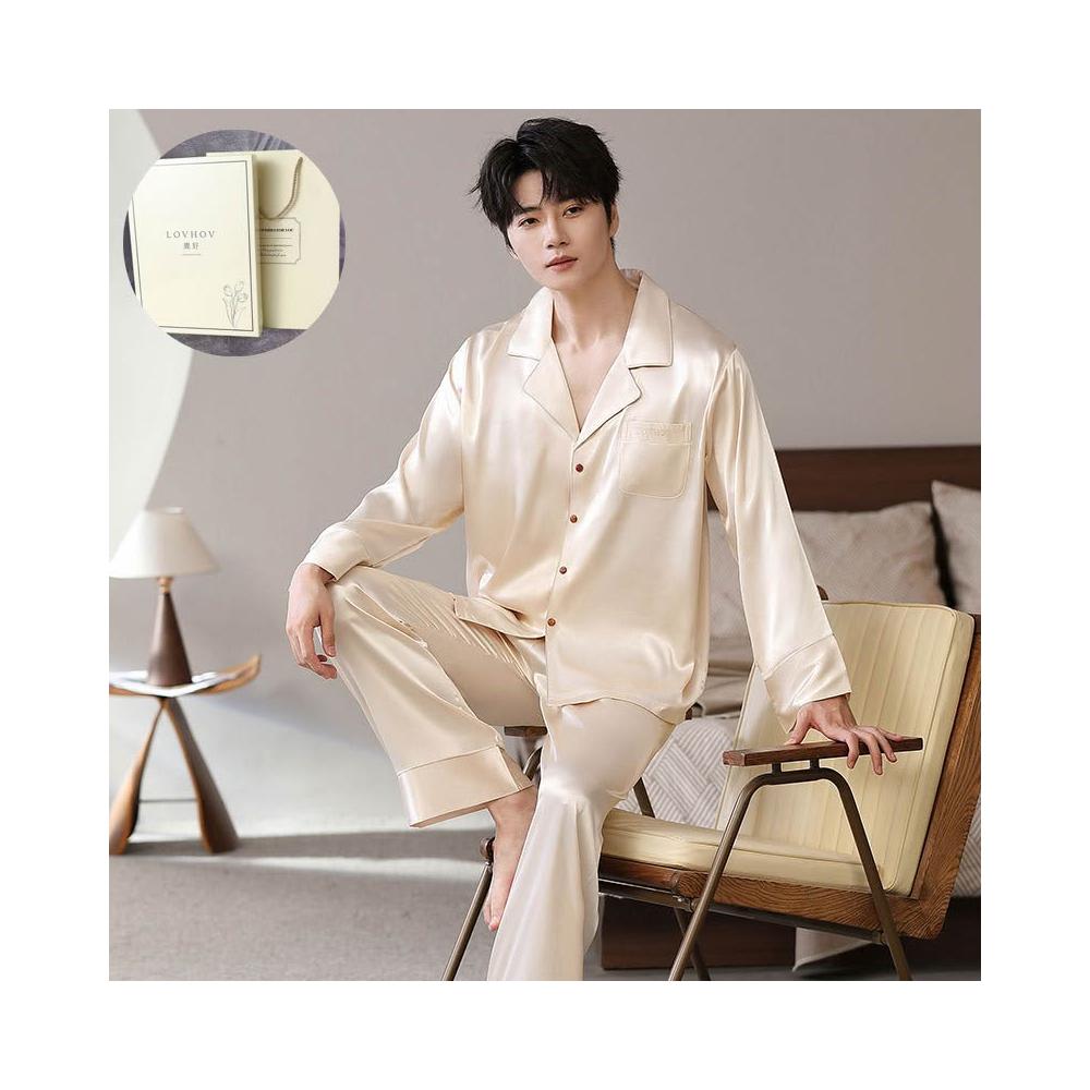 絮語精品可外穿家居服 綢緞家居服 休閑家居服 冰絲睡衣 睡衣男士大碼長袖禮盒套裝高級感仿真絲綢春夏季可外穿家居服