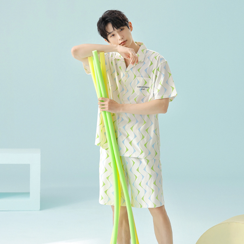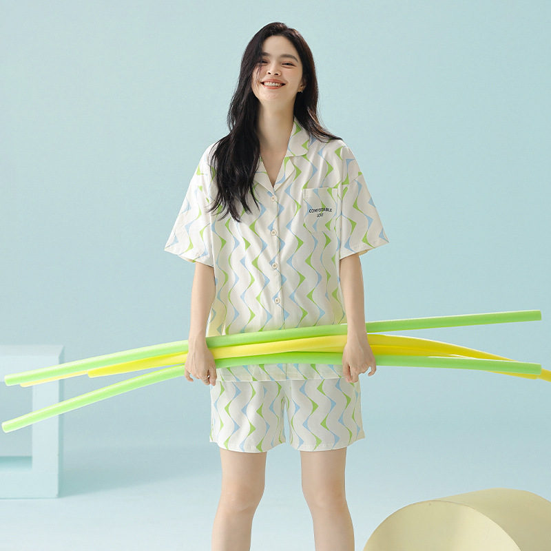 絮語精品可外穿家居服 綢緞家居服 休閑家居服 冰絲睡衣 春夏季純棉短袖情侶睡衣夏女士休閑男款薄款家居服