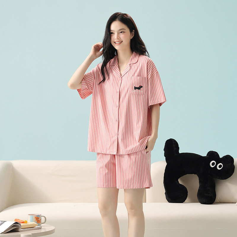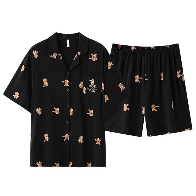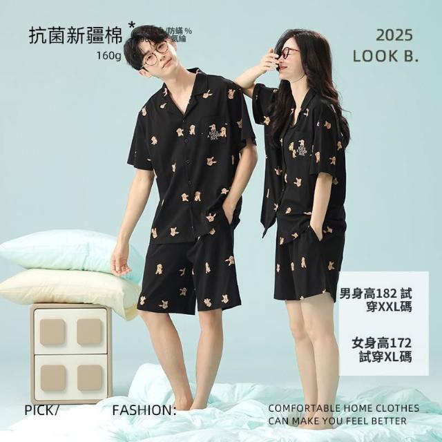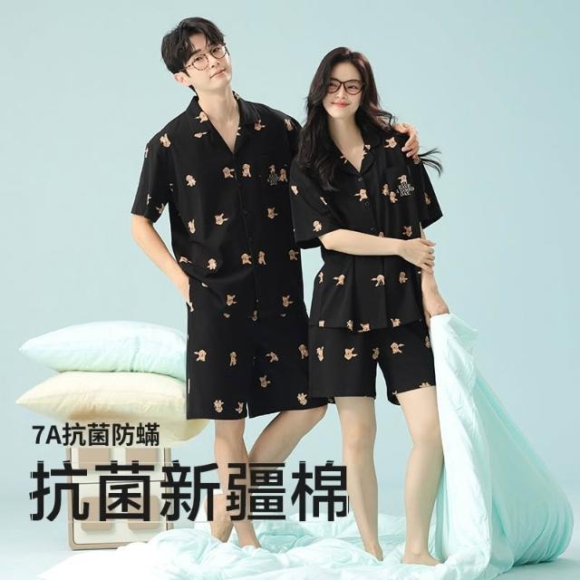 絮語精品可外穿家居服 綢緞家居服 休閑家居服 冰絲睡衣 春夏季薄款純棉情侶睡衣女士短袖黑色男家居服套裝