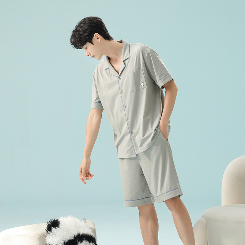 絮語精品可外穿家居服 綢緞家居服 休閑家居服 冰絲睡衣 春夏季薄款純棉情侶睡衣女士短袖黑色男家居服套裝