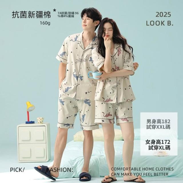 絮語精品可外穿家居服 綢緞家居服 休閑家居服 冰絲睡衣 春夏季薄款純棉情侶睡衣女士短袖短褲男家居服套裝