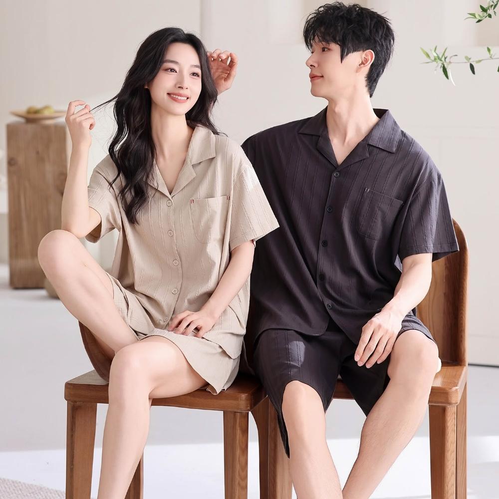 絮語精品可外穿家居服 綢緞家居服 休閑家居服 冰絲睡衣 棉質女生開衫睡衣夏季新款男生短袖短褲休閑家居服情侶