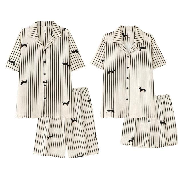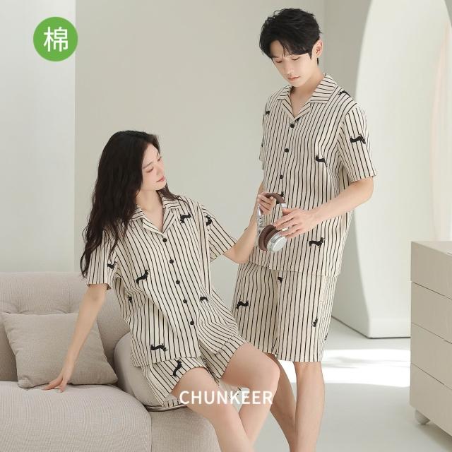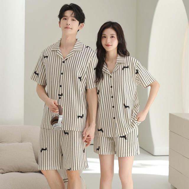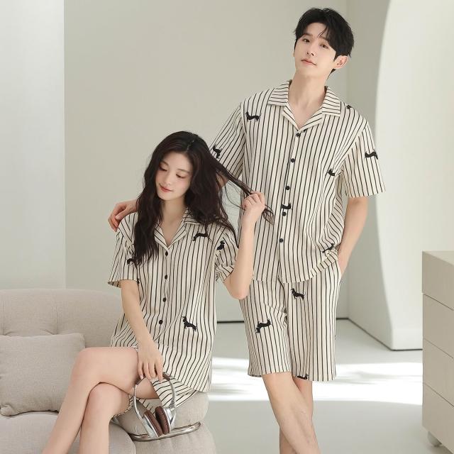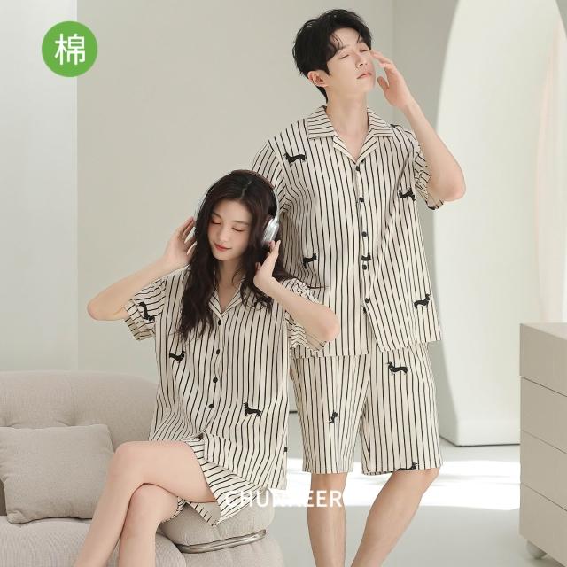 絮語精品可外穿家居服 綢緞家居服 休閑家居服 冰絲睡衣 新款情侶款開衫針織純棉睡衣套裝男女夏季短袖短褲休閑高檔家居服