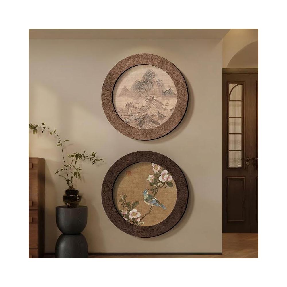 絮語精品復古沙發掛畫 背景墻掛畫 三聯墻壁畫 墻壁裝飾 客廳圓形裝飾畫高級感沙發電視背景墻面掛畫玄關茶室壁畫