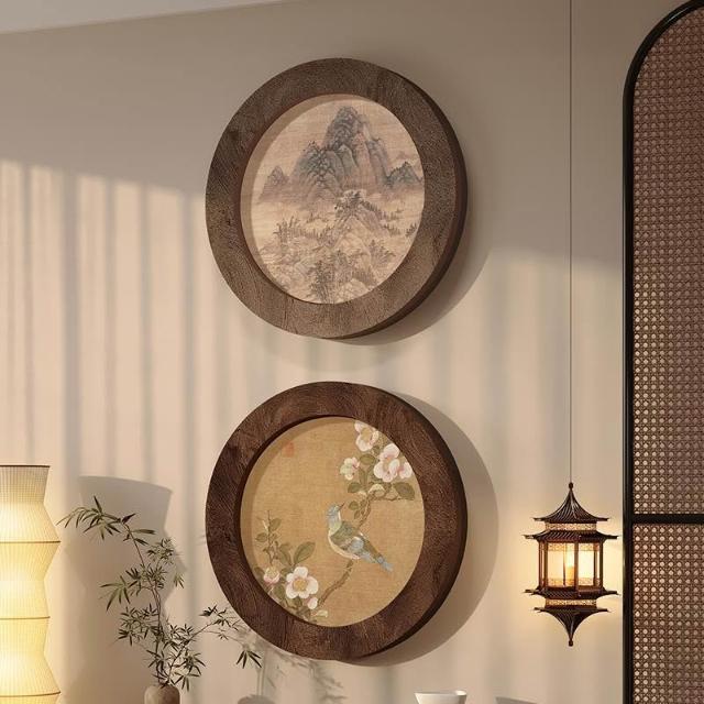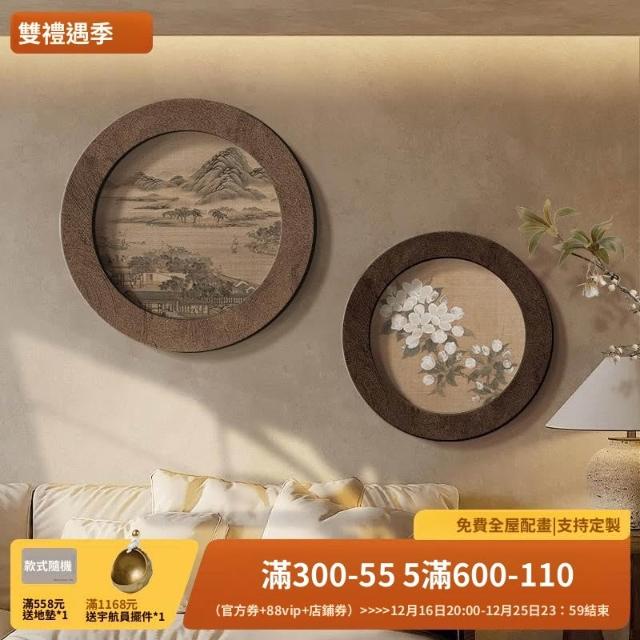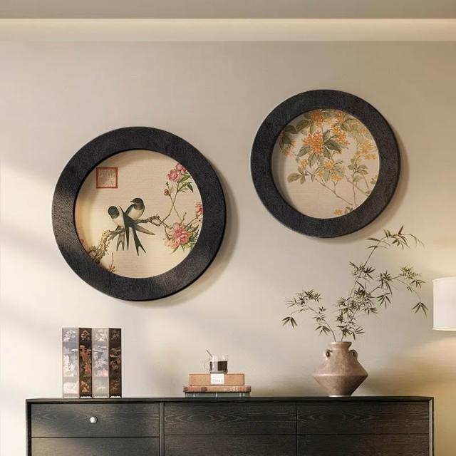 絮語精品復古沙發掛畫 背景墻掛畫 三聯墻壁畫 墻壁裝飾 客廳圓形裝飾畫高級感沙發電視背景墻面掛畫玄關茶室壁畫