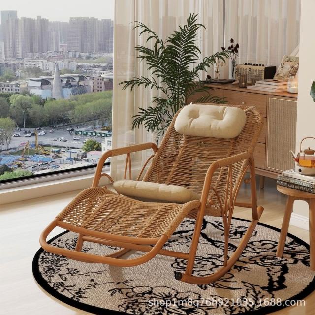 絮語精品折疊躺椅 搖搖椅躺椅 懶人沙發 跨境爆款春季戶外庭院青蘭搖椅搖擺躺椅家用藤編陽臺懶人戶外休閑