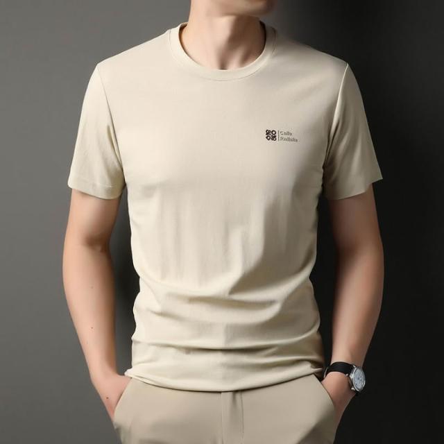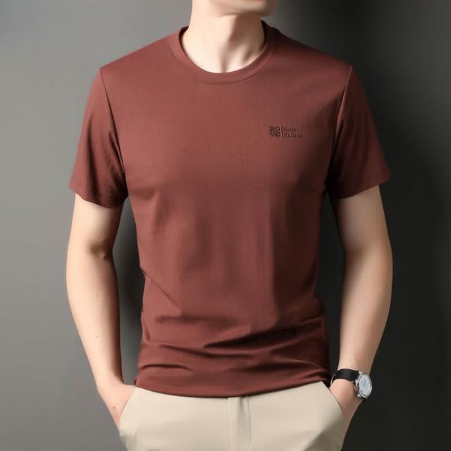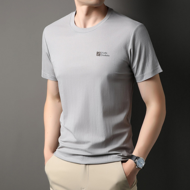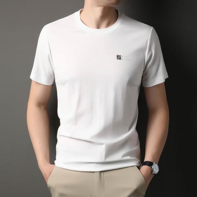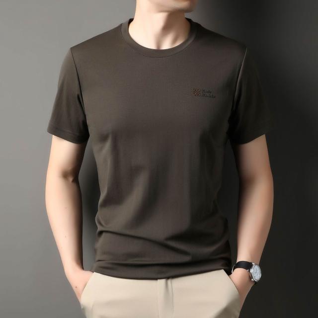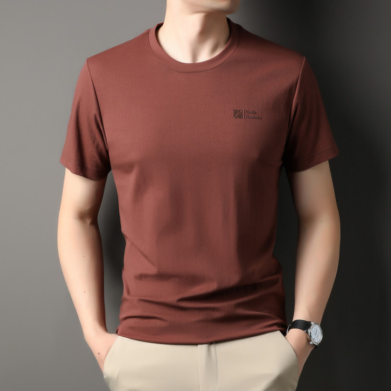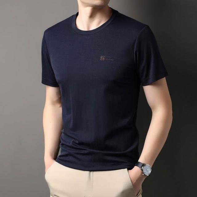 絮語精品短袖體恤T恤寬鬆體恤衫純色T恤 男士短袖t恤圓領休閑半袖中年寬松冰絲薄款體恤衫