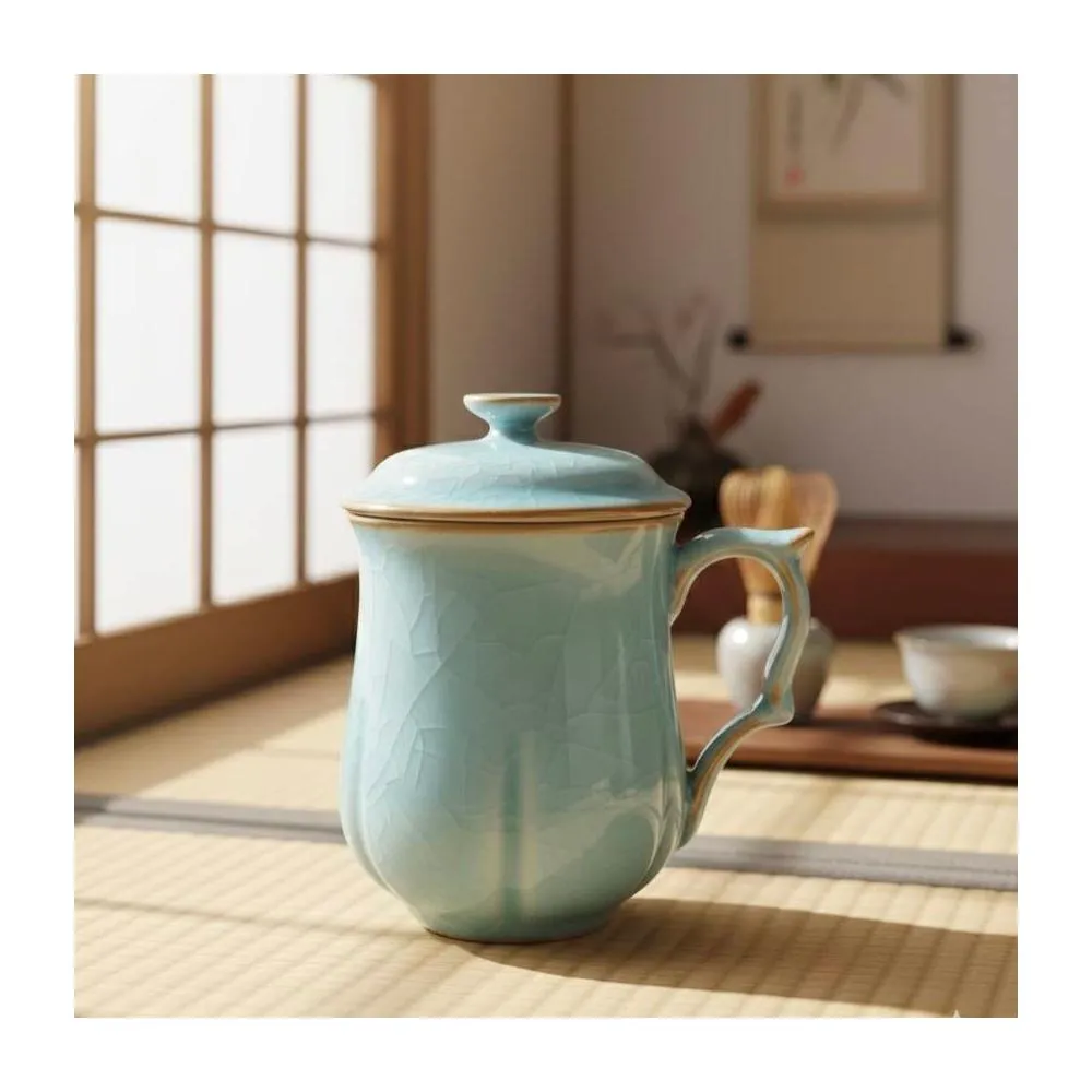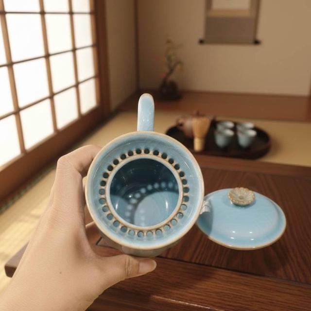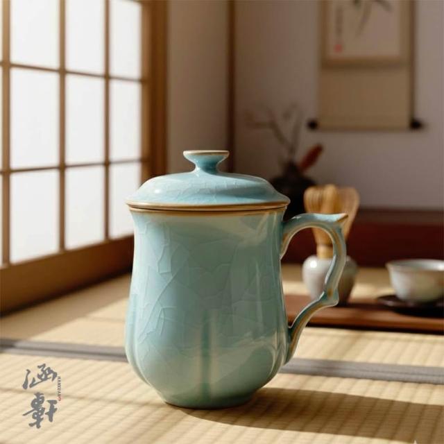 涵軒藝術柏璇相遇青瓷 匠心手工濾孔同心圓辦公杯、馬克杯 禮品茶具套組