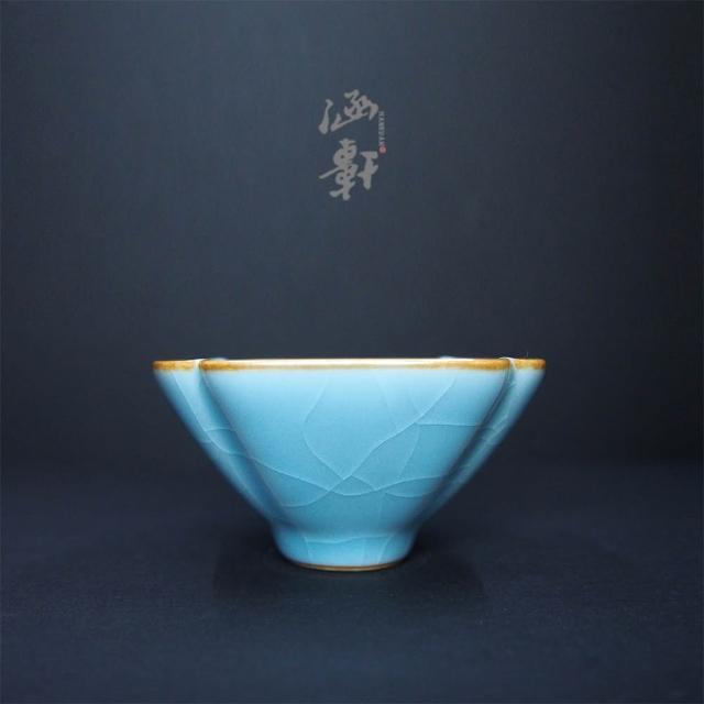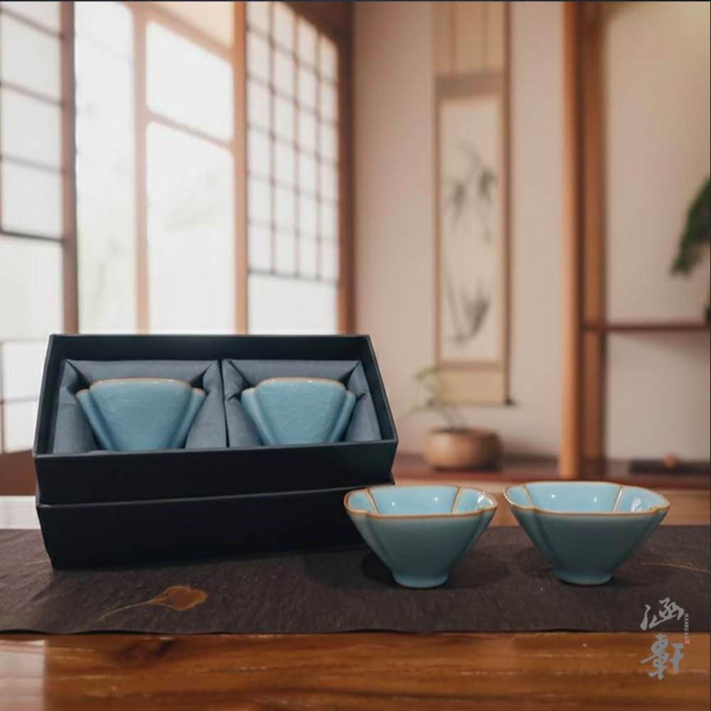 涵軒藝術柏璇青瓷 四方斗笠雙杯組 茶杯、茶具,年節禮盒