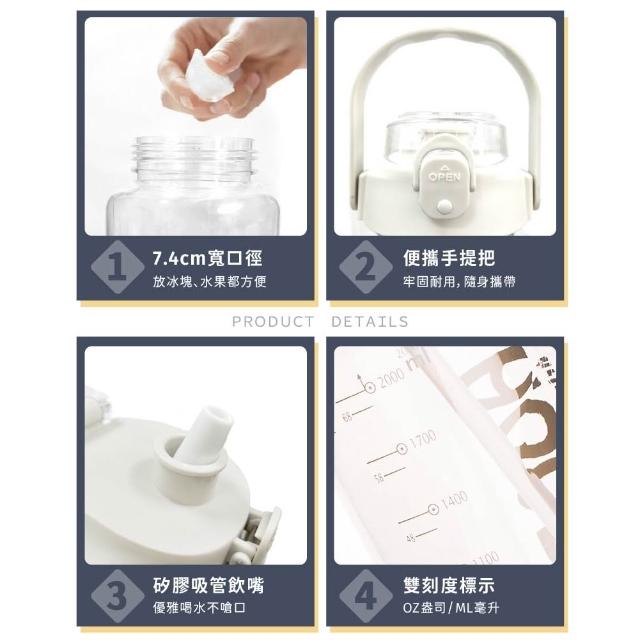 大容量彈蓋吸管水壺2000ml