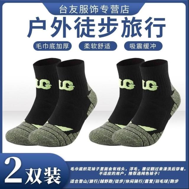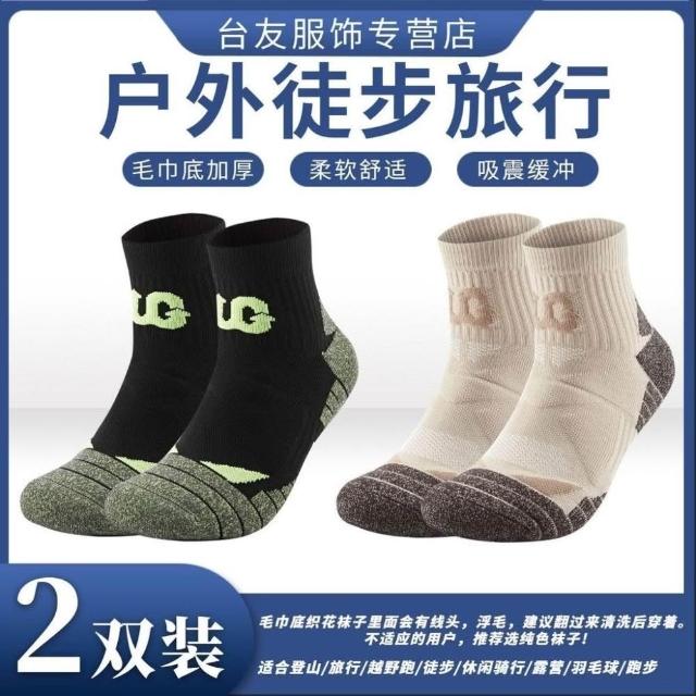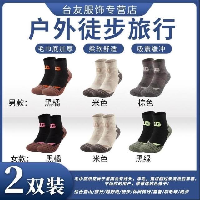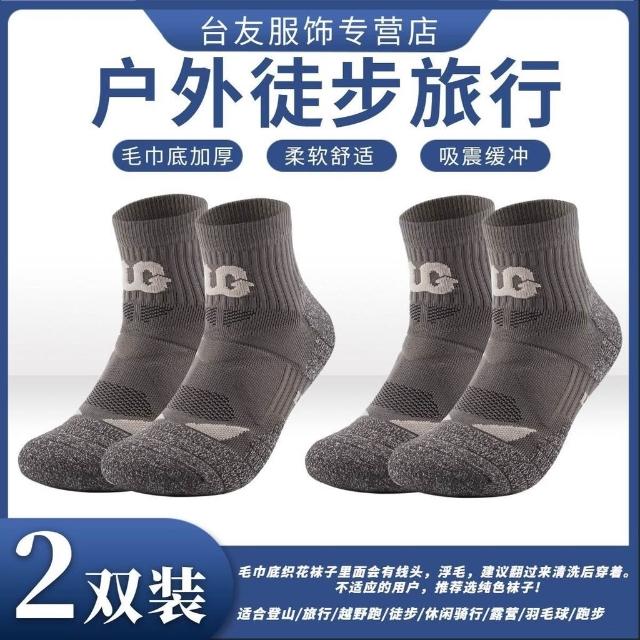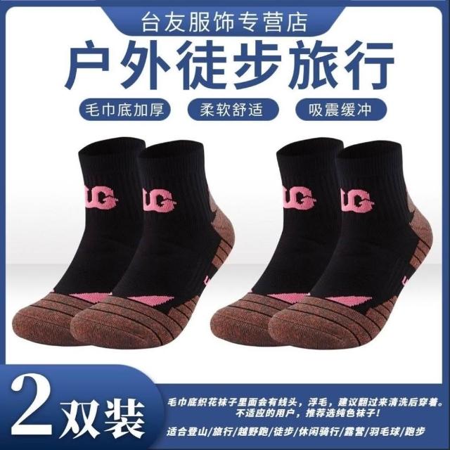 品質優選+阿格萊德專業徒步登山襪戶外跑步短邦毛巾底減震耐磨低幫襪2雙裝