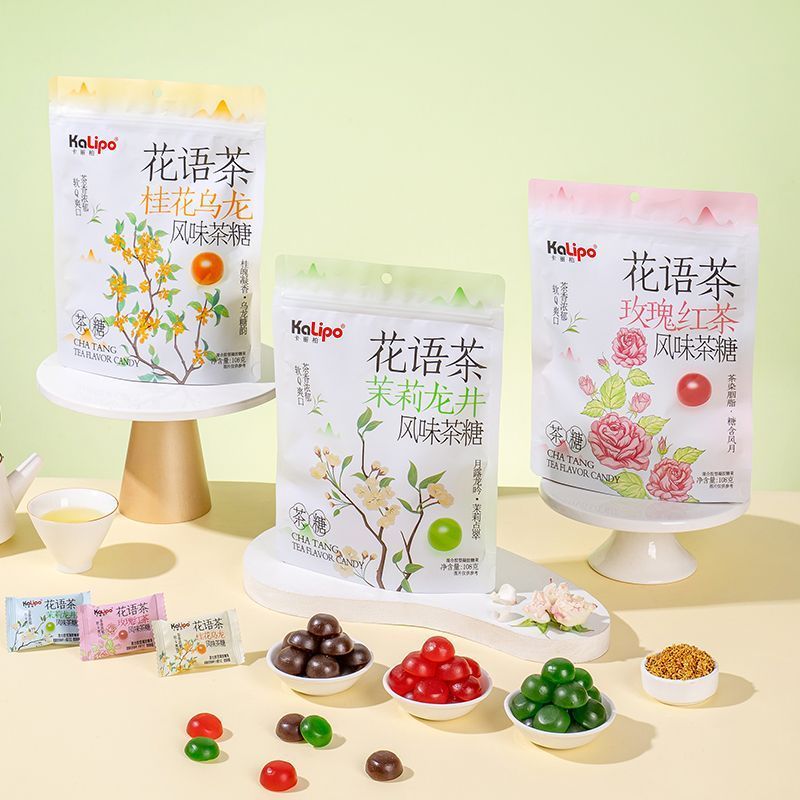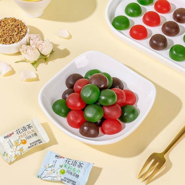 品質優選+爆漿茉莉龍井桂花烏龍花茶軟糖小零食網紅招待糖果解饞零食批發