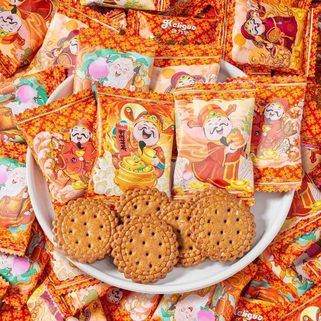 品質優選+棵力果五福財神紅糖芝麻小圓餅乾獨立小包裝過新年貨散裝零食批發