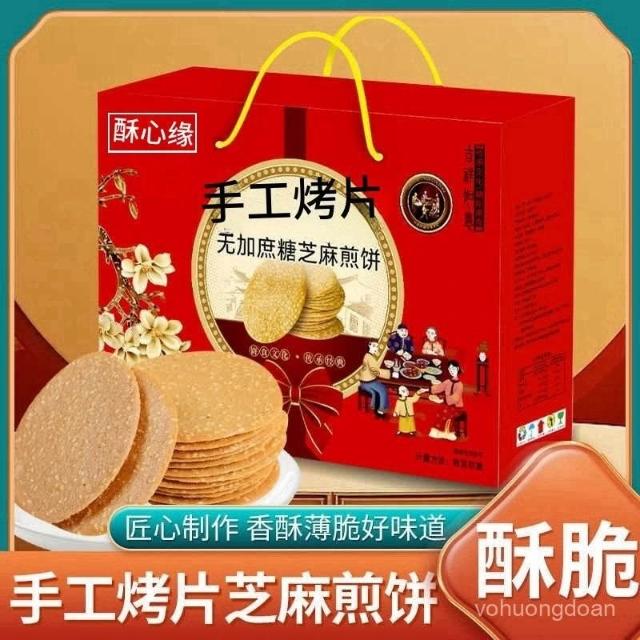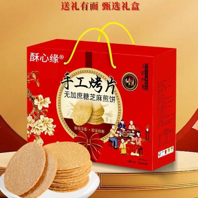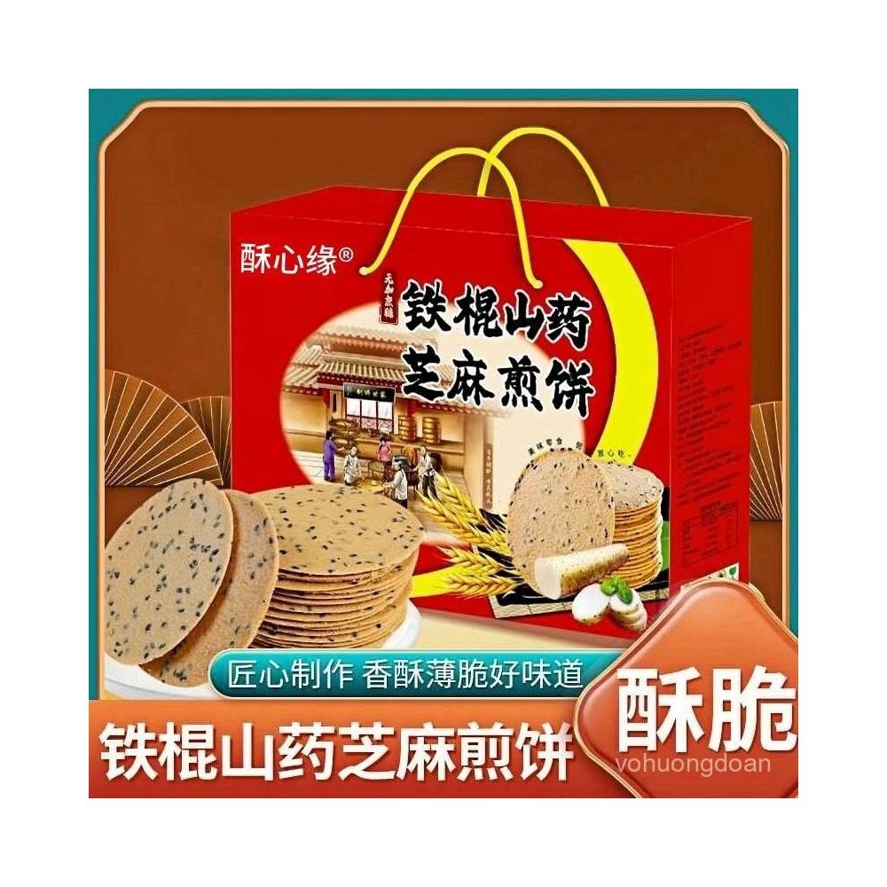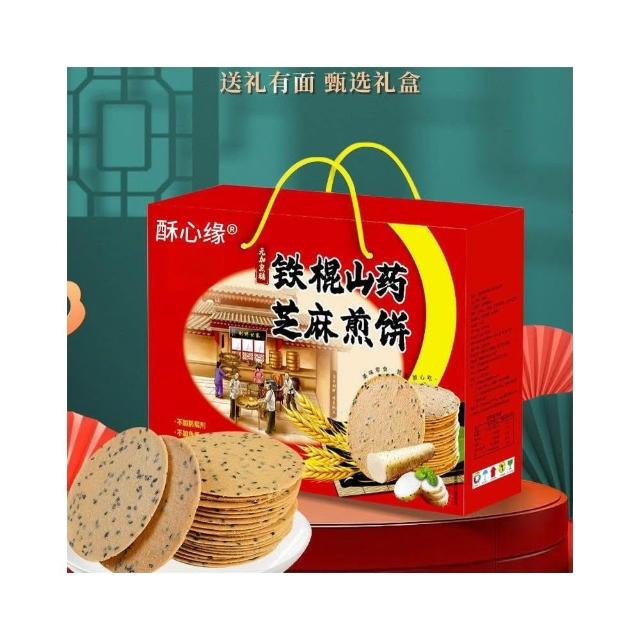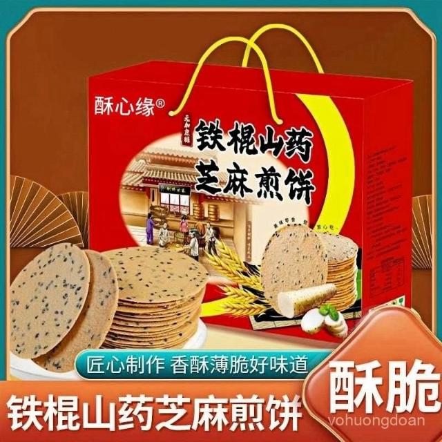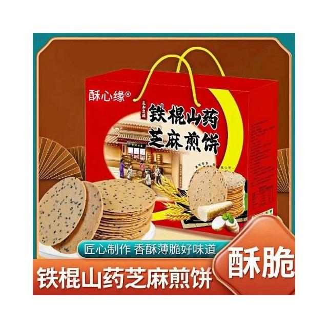 品質優選+ 精美禮盒裝鐵棍山藥黑芝麻煎餅烤片酥脆送禮老人兒童可喫食品熱賣