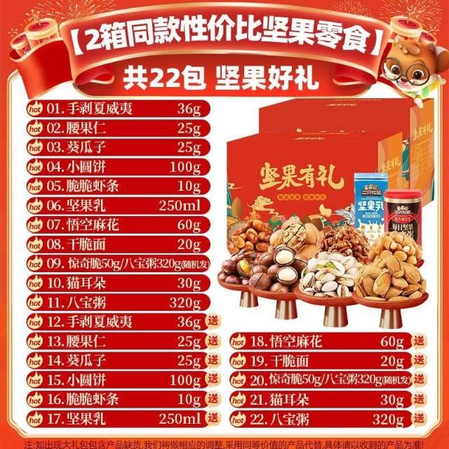 品質優選+ 三衹鬆鼠堅果零食禮盒9包/18包零食禮包整箱送長輩年貨節禮品熱賣