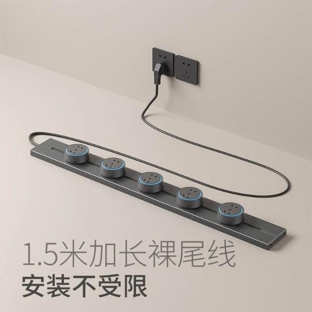 品質優選+可移動軌道插座旋轉分控接線排插家用餐邊櫃廚房導軌滑動插排帶線