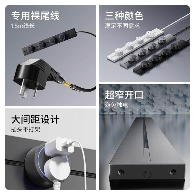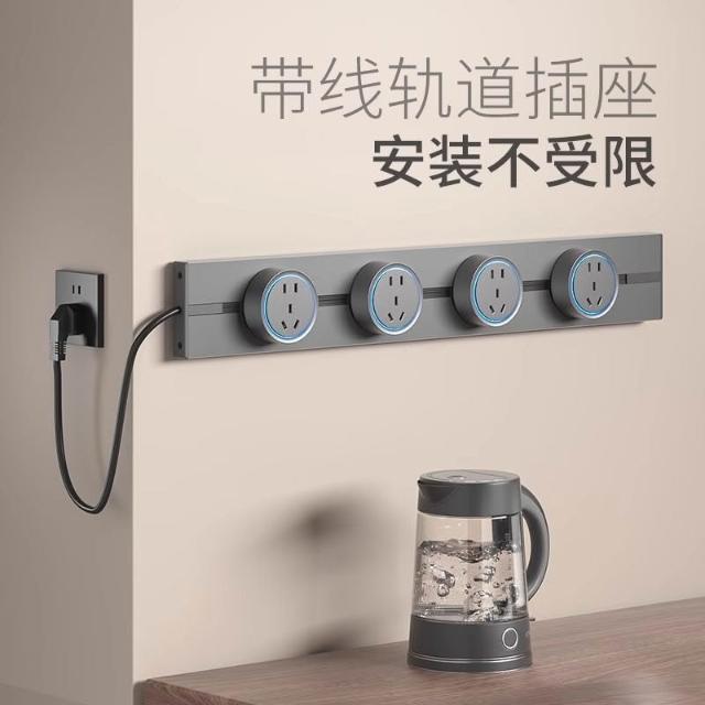 品質優選+可移動軌道插座旋轉分控接線排插家用餐邊櫃廚房導軌滑動插排帶線